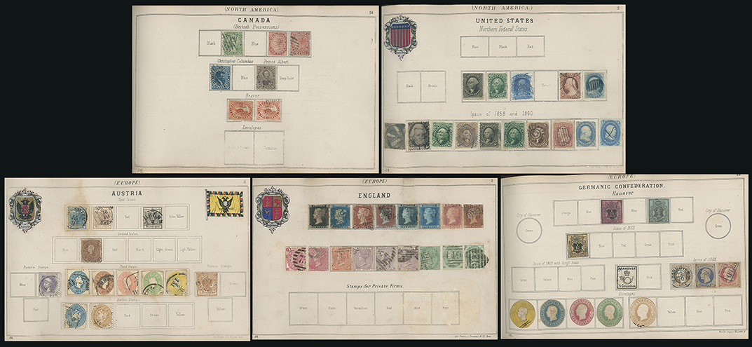 U.S.A. 1857 set used, Canada 1859 used to 17c., Australian States incl. Queensland Chalons to 1s. used etc., very rare, only the second example we have offered. (approx. 100) (Image1)