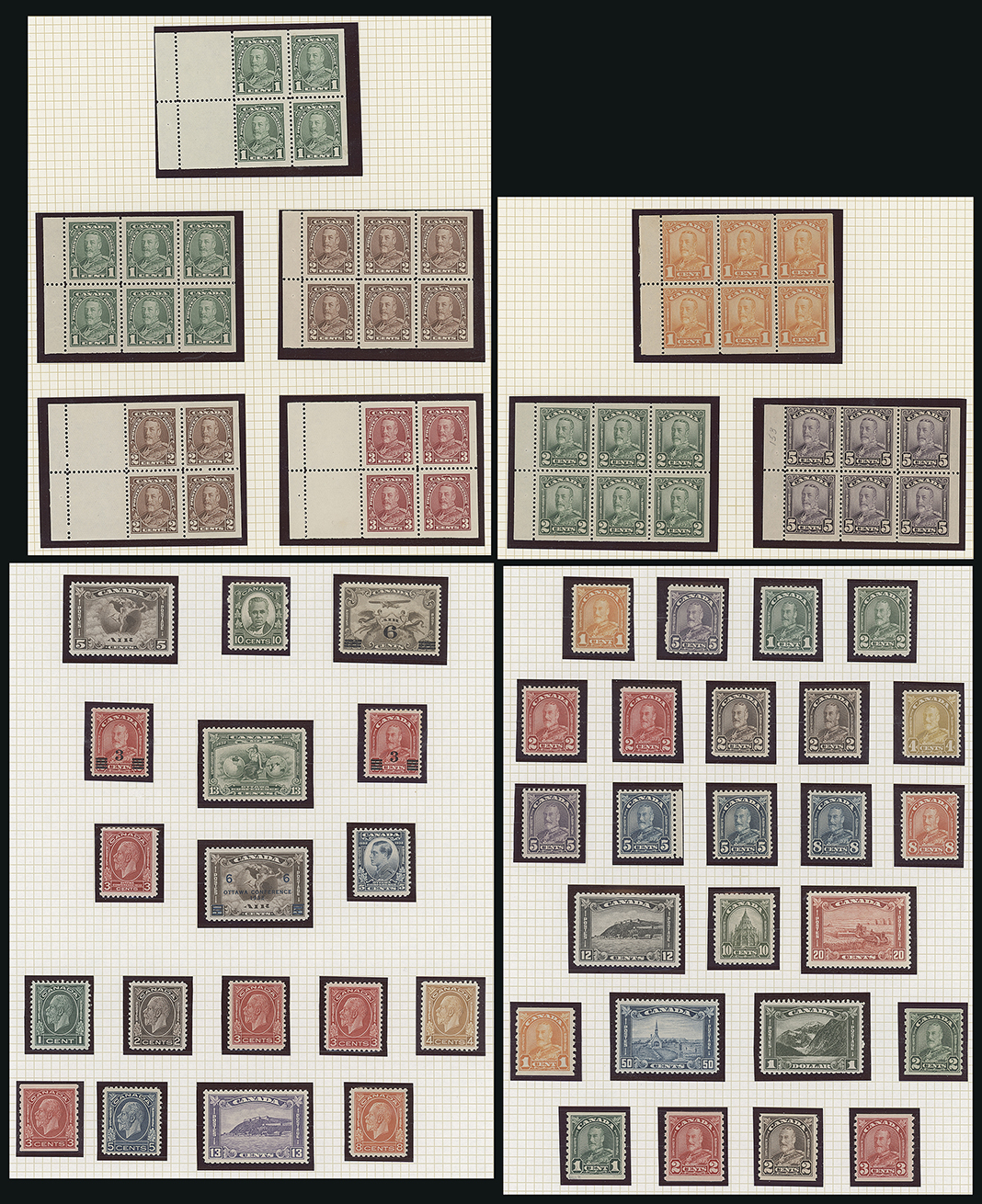 586 nh imageCanada: A comprehensive fine mint collection on leaves, 1911 to 1952, incl. 1911-22 and 1922-31 Admirals sets with most coils and booklet panes incl. 2c. deep green pane of six, 1915 5c. and 20c. “War Tax” overprints, 1916 most surcharges, 1928-29 and 1930-31 sets with all booklet panes, 1932-33 set, 1935 set with all booklet panes, apparently complete K.G.VI issues incl. coils and booklet panes etc. Stated to cat. £7,300+. (300+ stamps and 49 panes) (Image1)