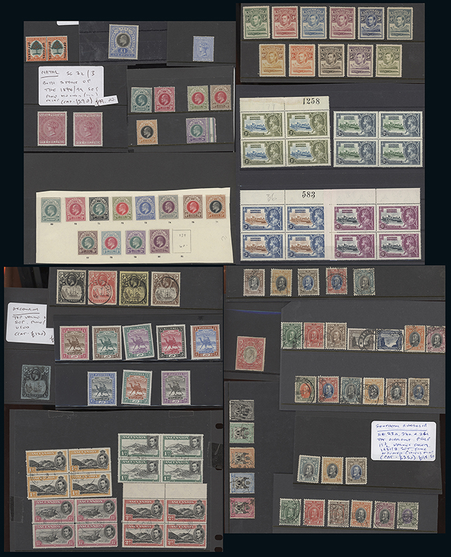 postage due 1948 sets, mint, Somalia 1943-46 set unmounted mint, South Africa 1933-48 2d. blue and violet and 6d. die I unmounted mint pairs, Natal 1874-99 5s. (2), 1882-89 3d. blue, 1902-03 set to 2s.6d., 1902 £1 and 1904-08 to 2s. mint, K.U.T.