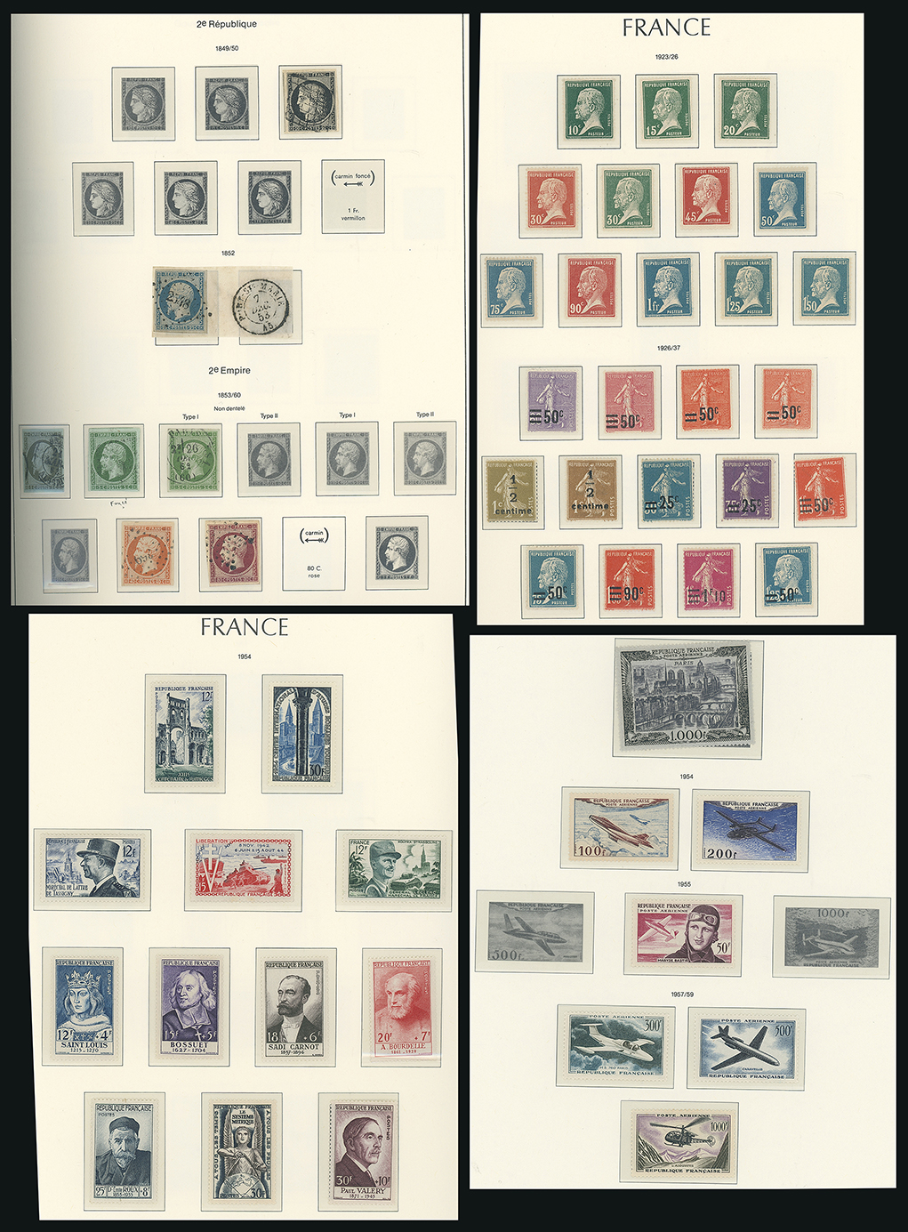 848 imageFrance: A mainly unmounted mint collection in Lighthouse album, from 1849 to 1959, incl. some 19th century used, then from 1900 onwards chiefly unmounted mint incl. 1923-26 Pasteur set, 1926-27 War Orphans set (mounted), 1937 Museum set, 1950s National Relief Fund sets, Air Post issues incl. 1949 set, 1950 1,000f (mounted), 1957-59 set, “ANNULE” overprints Blanc 1c. block of six and Sower 5c. block of eight and 25c. block of six etc., mainly fine. (100s) (Image1)