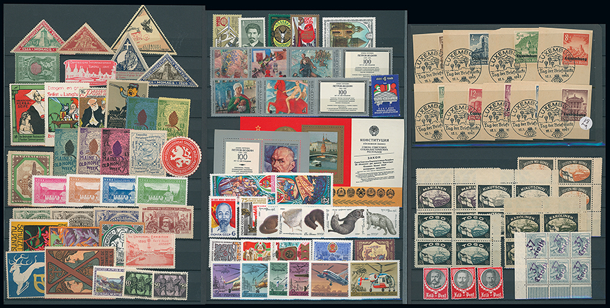130 imageAll World ranges in a large stockbook, incl. Commonwealth, Great Britain, Russia 1970s unmounted mint, Germany and areas, lost colonies labels, World early exhibition labels, some covers, etc. (many 100s) (Image1)