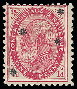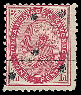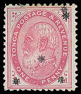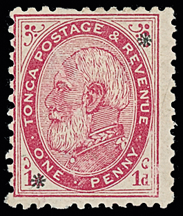 The James Teron Collection of Tonga: 1891 (Nov.) overprinted with stars, 1d. carmine, perf. 12 x 111/2 mint, fine. S.G. 7d, cat. £350. Photo. (Image1)