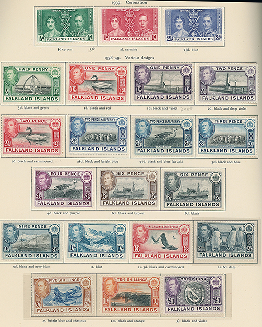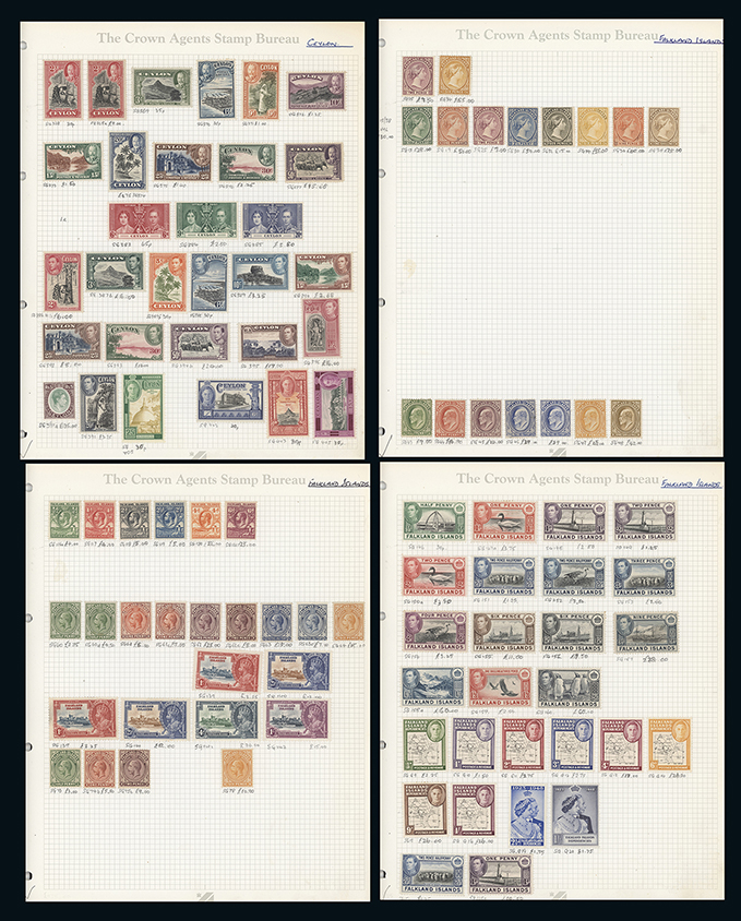 Islands 1938-48, Ceylon 1938-49, Cyprus 1938-51 set, Dominica 1938-47 set, Falkland Islands 1938-50 and 1952 sets, Fiji 1938-55 set, Gambia 1938-46 set, Gibraltar 1938-51 to 10s., Gold Coast 1938-43 set, Grenada 1938-50 and 1951 sets, Hong Kong