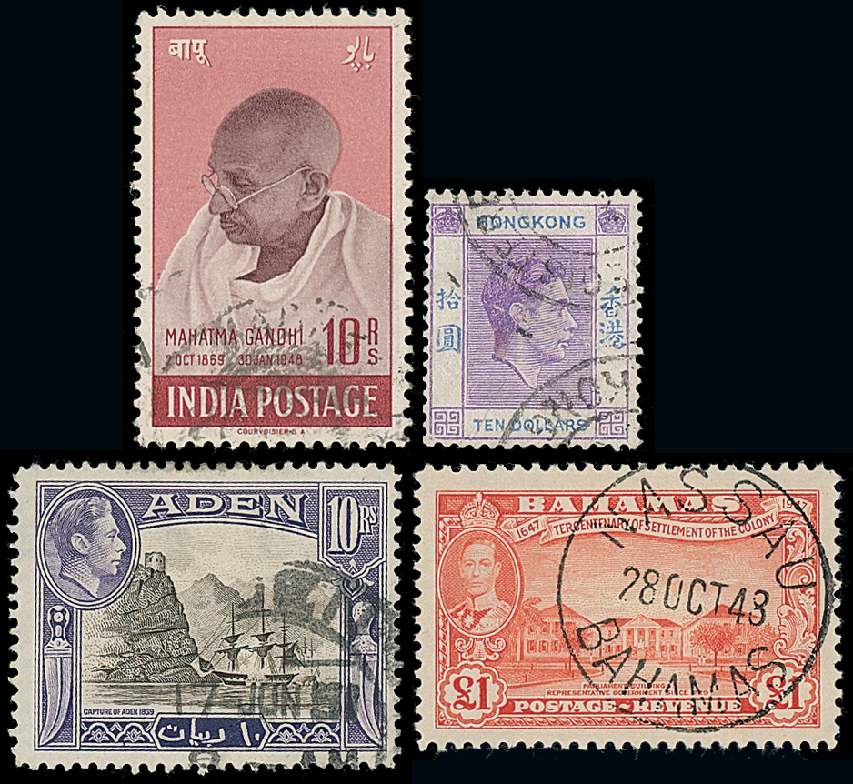 Gambia 1938-46, Gilbert and Ellice Islands 1939-51 and 1940 postage dues, Gold Coast 1938-41, G.B. 1939-48 (both 10s.) Hong Kong 1938-52 to $5, India 1937, Jamaica 1938-52, Johore 1949-52, Kedah 1937, Kelantan 1937-40 and 1951-52, K.U.T. 1938-54,