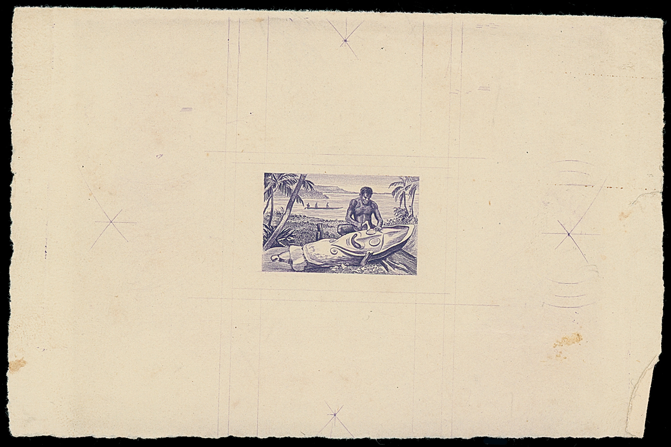 78 imageEssays, Proofs and Specimens: A selection of 1970s De La Rue proofs, incl. Algeria 1970 Exhibition 60c. complete proof in green, Basutoland frame only, etc. (7) (Image1)