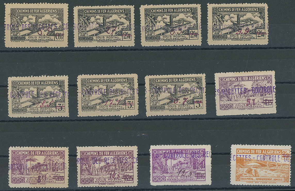 French Colonies: Algeria: Railway Stamps: 1943 surcharged set mint (Yvert 98-109), unmounted except Yvert 106 and 109, the Yvert 108 showing a non standard surcharge, scarce. Photo. (Image1)