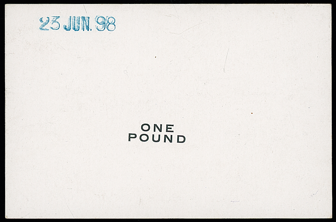 Gibraltar: 1903 “ONE/POUND” duty plate die proof in black on glazed card (92 x 60mm), dated “23 JUN.98” as used first for Q.V. revenue issues. Photo. (Image1)