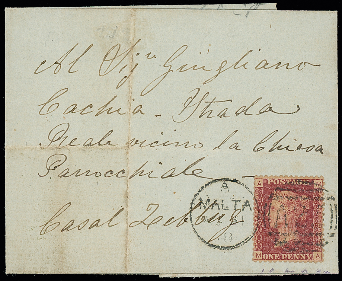 An exhibition centrepiece, the wavy line cancellations on cover being the benchmark for any truly outstanding collection of Malta. Photo.