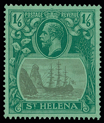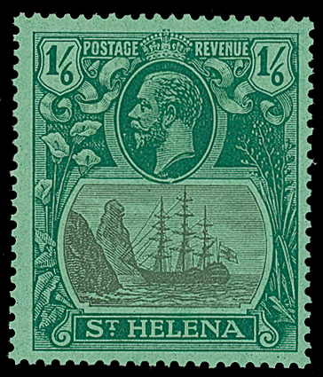 Saint Helena: 1922-37 Watermark Mult. Script CA 1s.6d. grey and green on green variety ‘cleft rock’, fine fresh mint. S.G. 107c, cat. £450. Photo. (Image1)