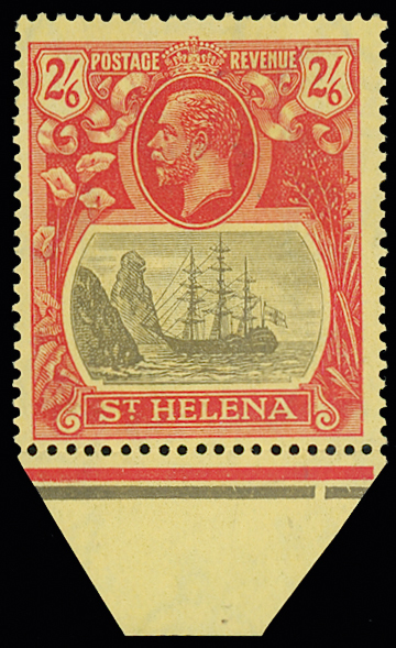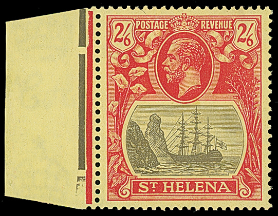 Saint Helena: 1922-37 Watermark Mult. Script CA 2s.6d. grey and red on yellow variety ‘cleft rock’, mint marginal example, fine. S.G. 109c, cat. £425. Photo. (Image1)