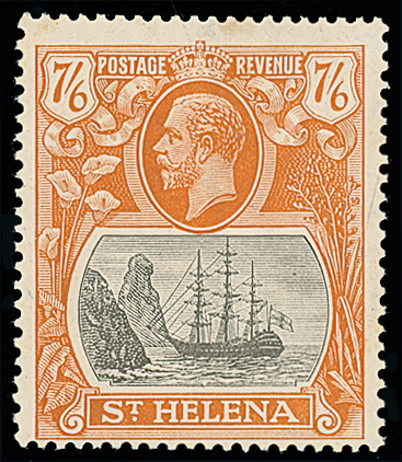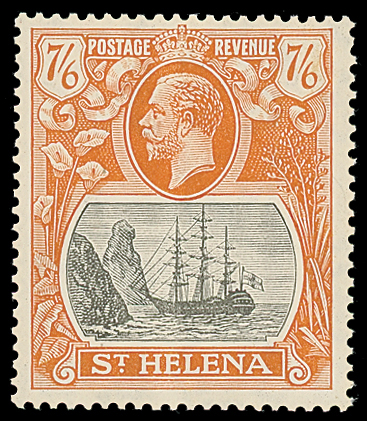 Saint Helena: 1922-37 Watermark Mult. Script CA 7s.6d. brownish grey and orange, mint with usual brown gum, fine. S.G. 111d, cat. £1,500. Photo. (Image1)