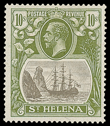 Saint Helena: 1922-37 Watermark Mult. Script CA 10s. grey and olive-green variety ‘torn flag’, mint, fine. S.G. 112b, cat. £2,000. Photo. (Image1)