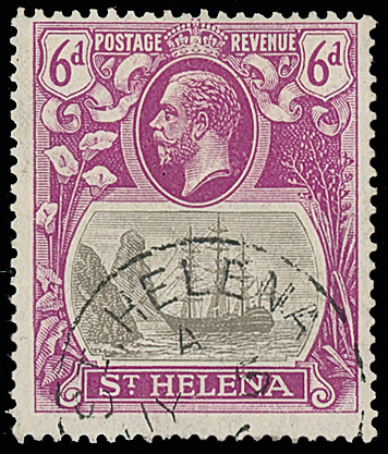 Saint Helena: 1922-37 Watermark Mult. Script CA 6d. variety ‘broken mainmast’, fine used. S.G. 104a. cat. £425. Photo. (Image1)