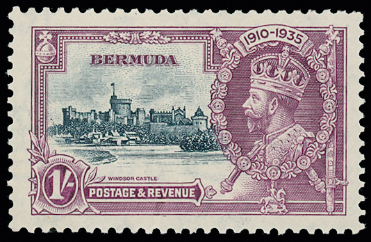 Bermuda: 1935 Silver Jubilee 1s. variety ‘kite and vertical log’, fine mint. S.G. 97l, cat. £700. Photo.