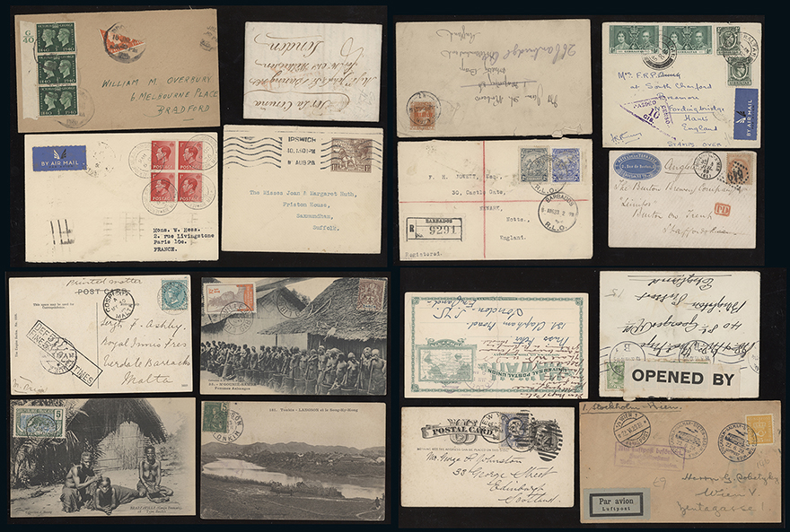 126 c, entire, etc. imagePostal History and Covers: An all World selection of covers and cards, 1810s to 1950s, incl. censored, airmail, W.W.I silk cards, pre-stamp ship letters, postal stationery etc. (approx. 100) (Image1)