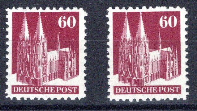Paar auf , mittl. senkr. Zähnung nach rechts verschoben, dadurch linke Marke rechts "ungezähnt", dekorat. Abart (Image)