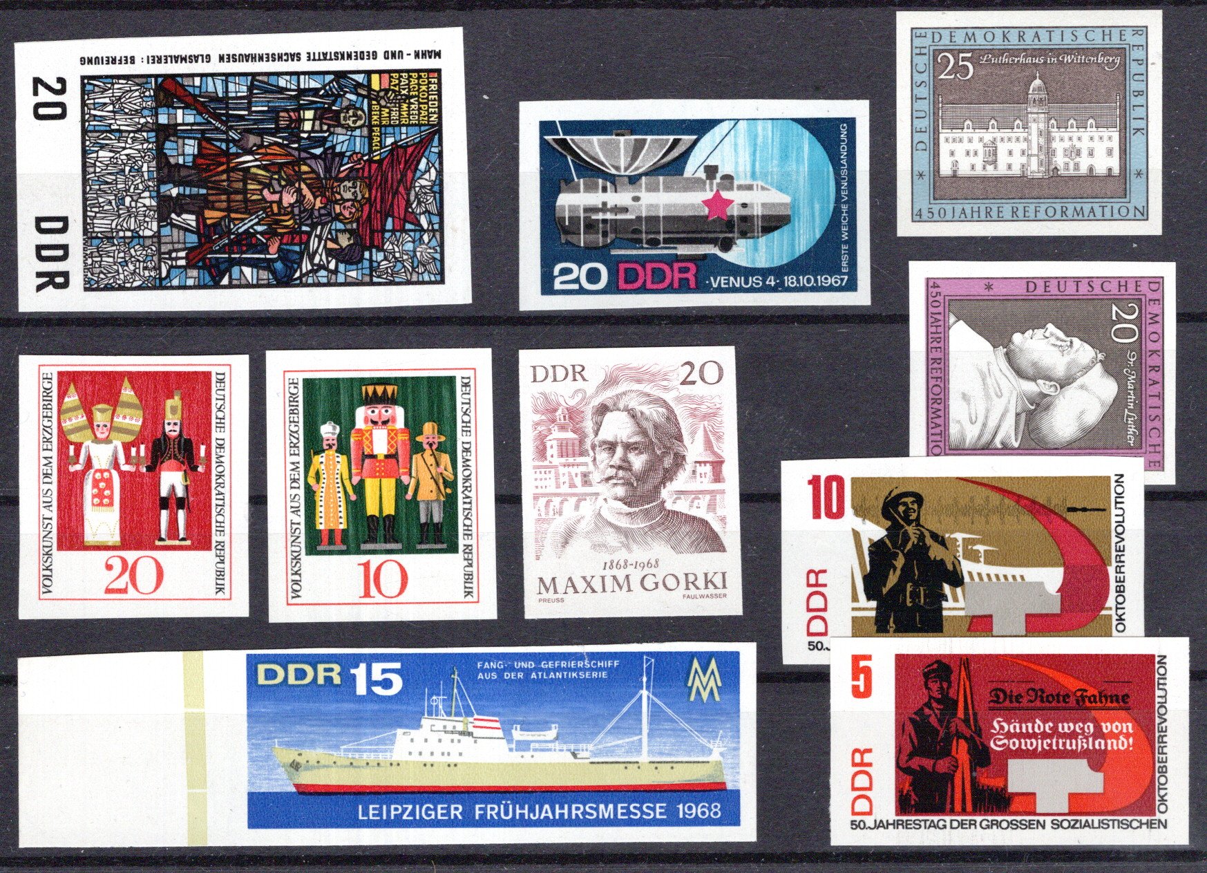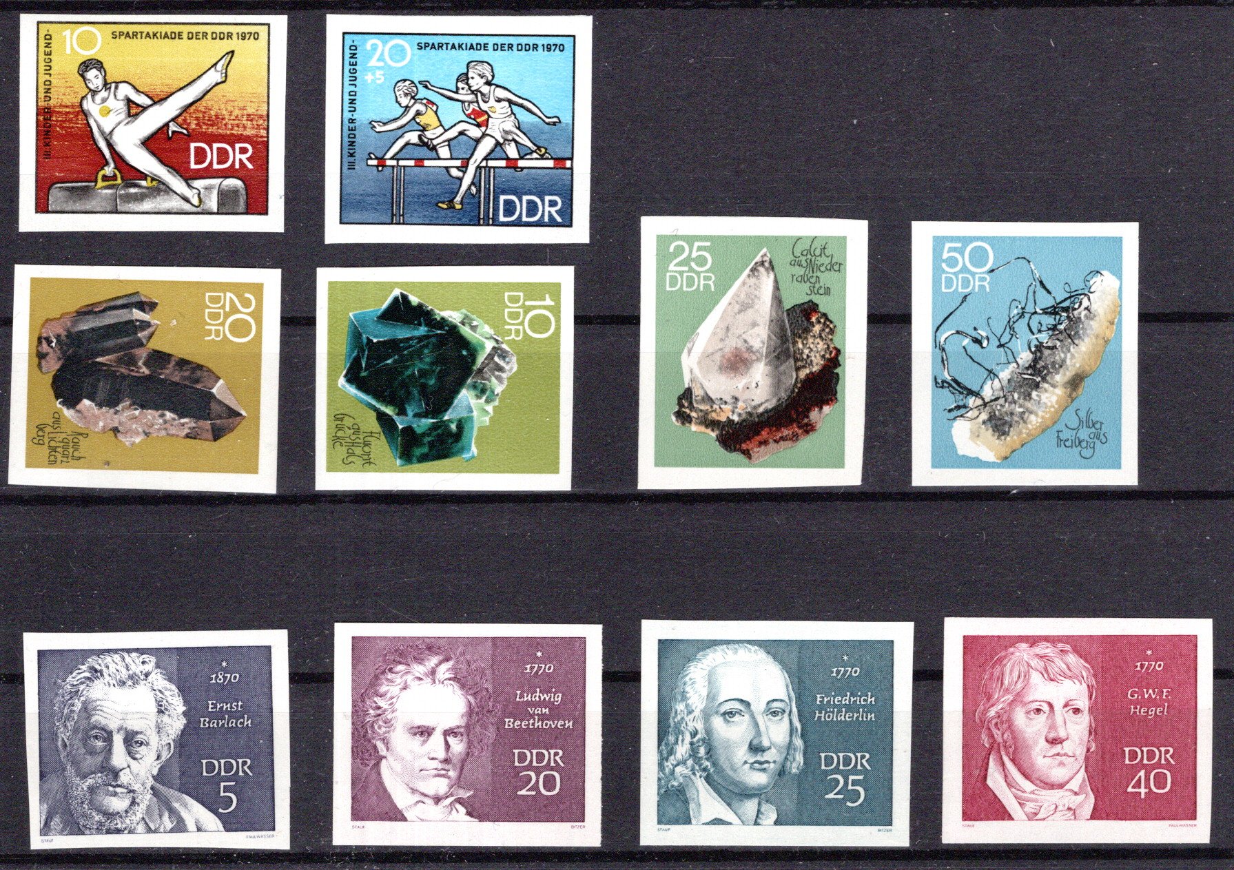 Serie "Aufbau in der DDR" 5Pf bis 3Mk (15 verschd.) je 1 kpl. Bogen (gefaltet), bei jedem Wert fehlt rechts ein Rand- (Image)