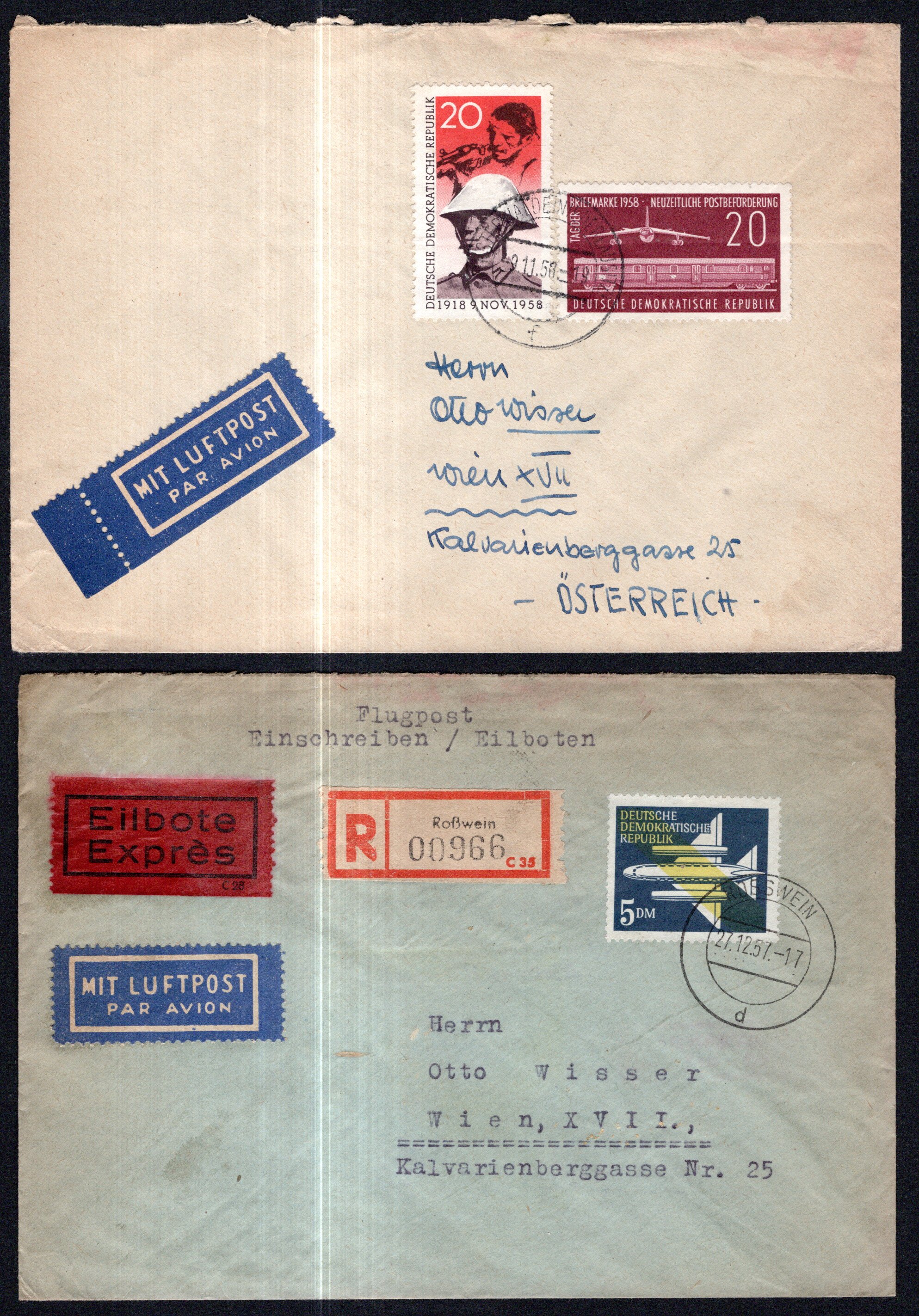 661 auf Luftp.Brief nach Wien, dazu 35 weit. Belege 50er Jahre (teils Sonderfahrten) bzw. bess. Frankt. wie 615EF Luft-/Einschr.-/Eilboten- nach Wien (Image)