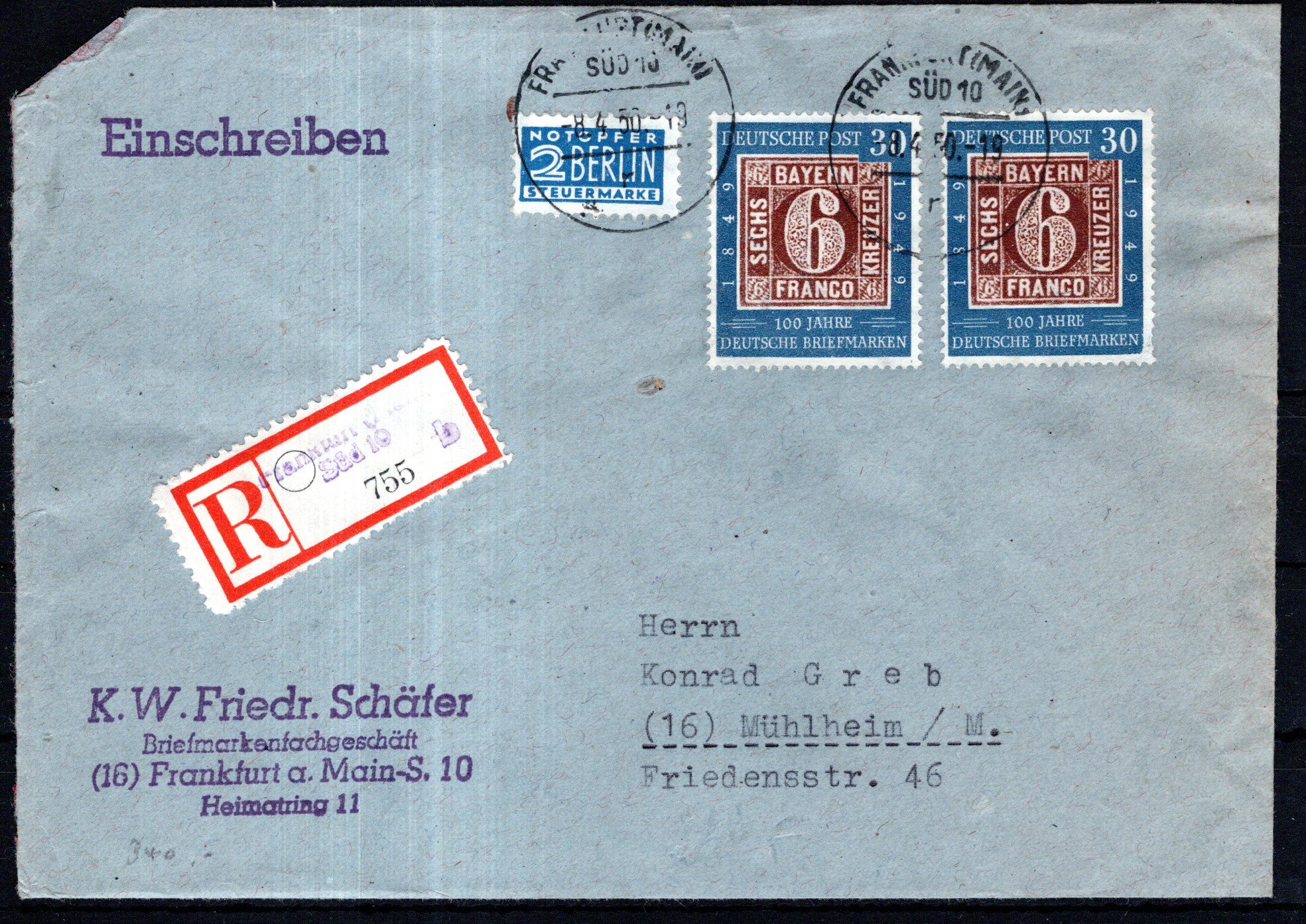 MeF auf R-Brief, linke obere Briefecke abgeschrägt, Pracht (Cat Value 340) (Image)