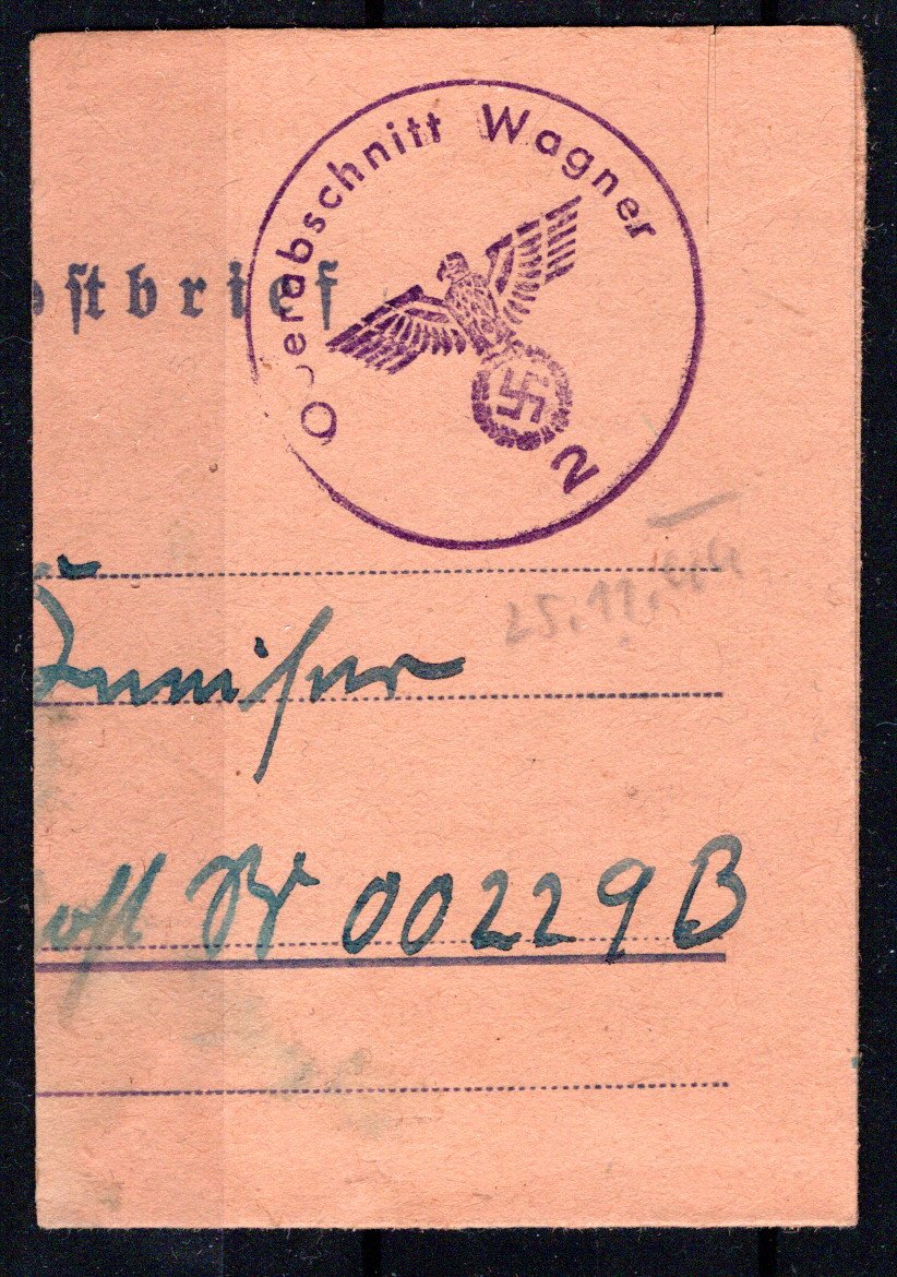 Volkssturm Briefstpl. "Oberabschnitt Wagner 2" (Ostpreußen) auf halbem Faltbrief an FP-Nr. 00229B (Image)