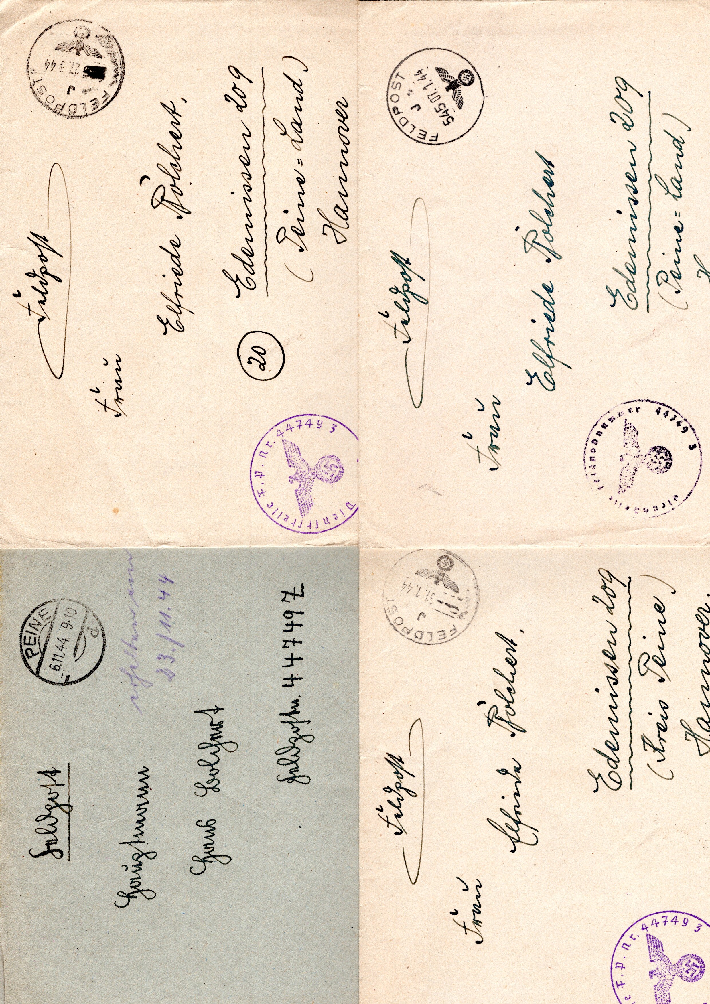 1943-44, Korrespondenz von fünf Belegen meist Front-Heimat von Hptm. H. Bolchert (Vordruck) FP-44749Z (Masjoen/Norwegen) (Image)