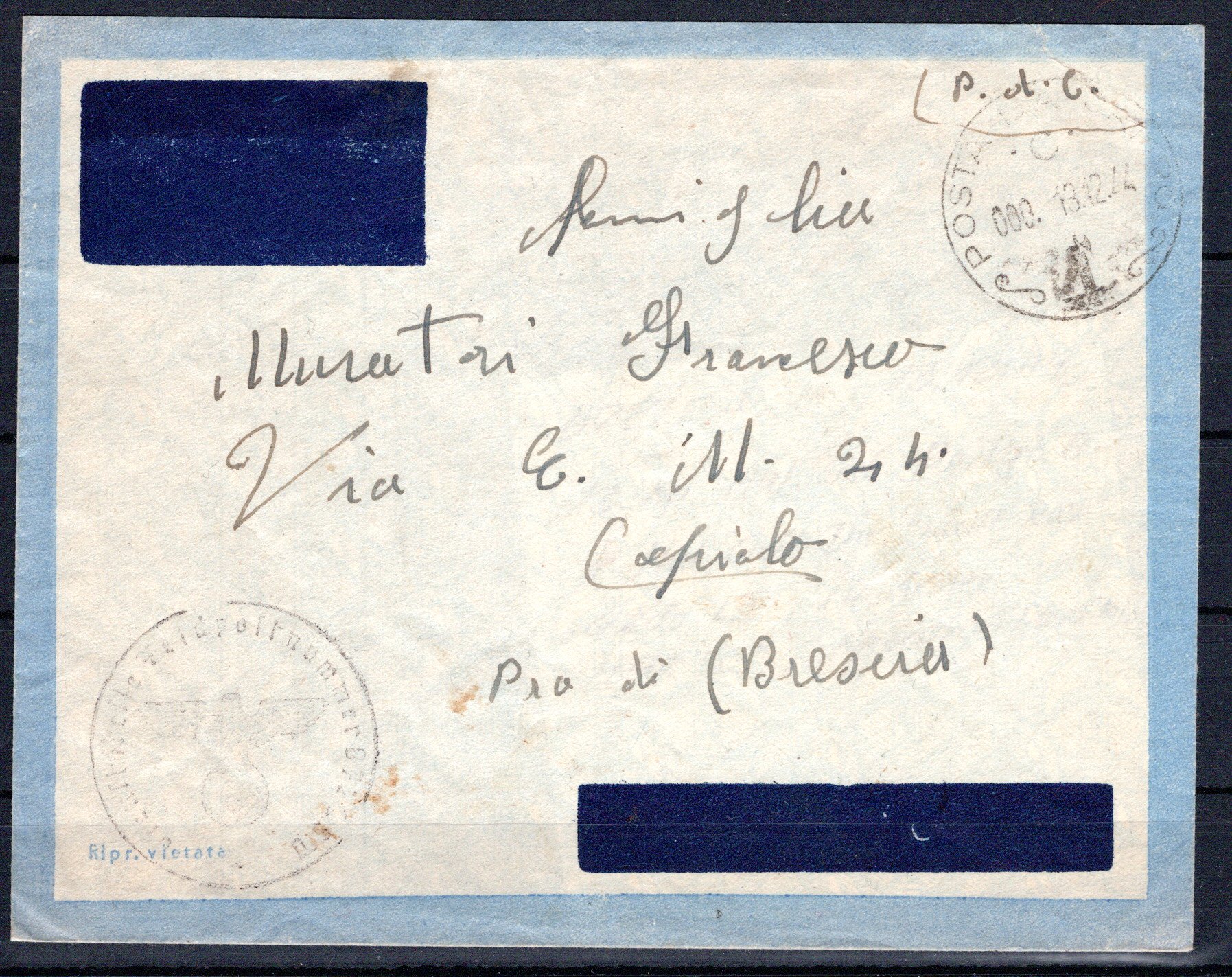 Nutzergruppe Italien, mit ital. Feldpost Stpl., vorders. Briefstpl. "87205 D" bzw. Übermalungen/Zensuren? Rücks. Ank.Stpl., Kab. (Image)