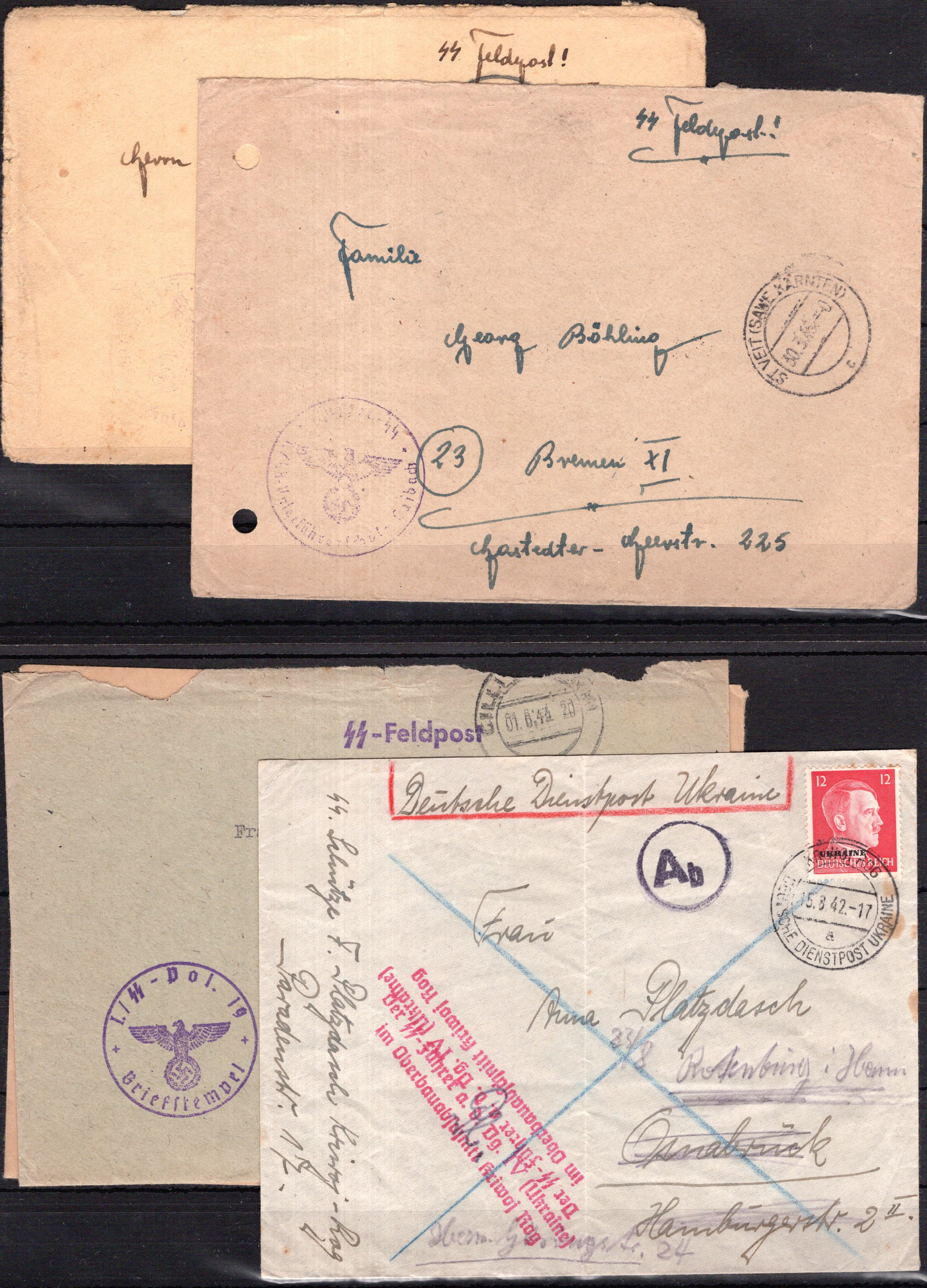 Böhmen&M., 127 Feldp.Belege, fast alle Dt.Dienstpost, u.a. 14 Einschreiben, 1 Victoria Karte (Dt. siegt an allen Fronten), gr. Stpl.Vielfalt