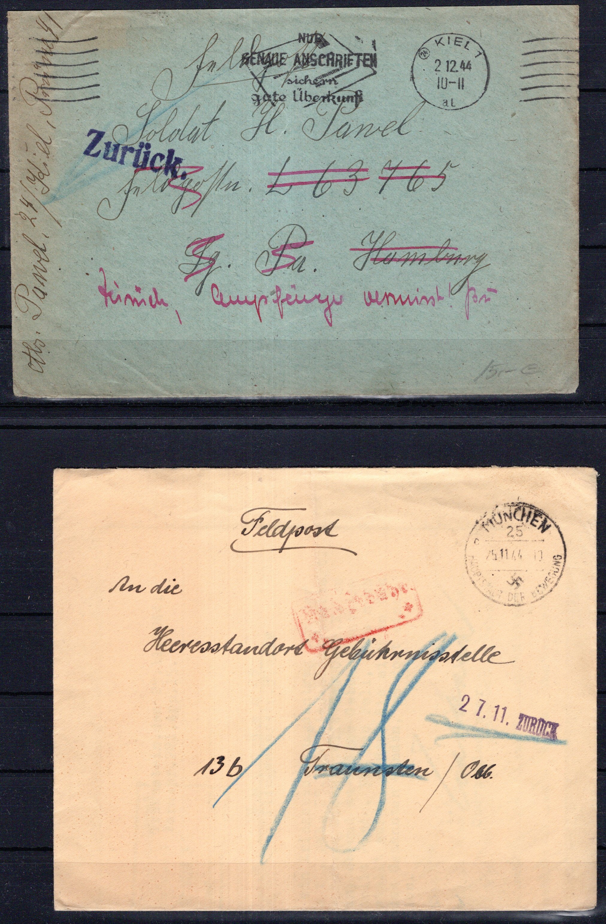 Feldpostbriefe mit "Zurück" Vermerk, einer mit Nachgebühr bzw. amtl. geöffnet incl. Briefstpl., Kab. (Image)