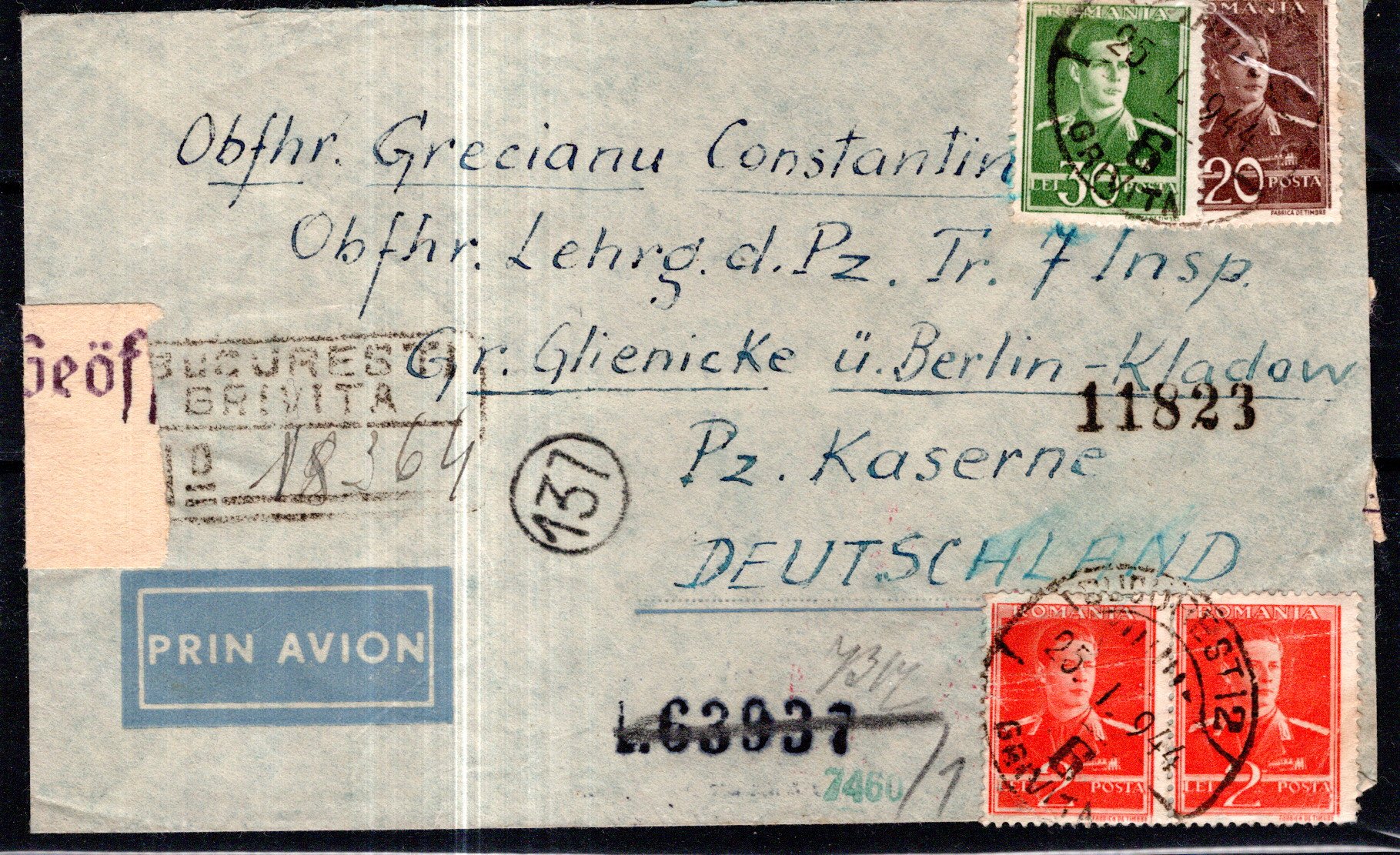 Rumänen in der Wehrmacht: 1944, frankt. Einschreibbrief mit verschd. Zensuren Heimat/Front (Image)