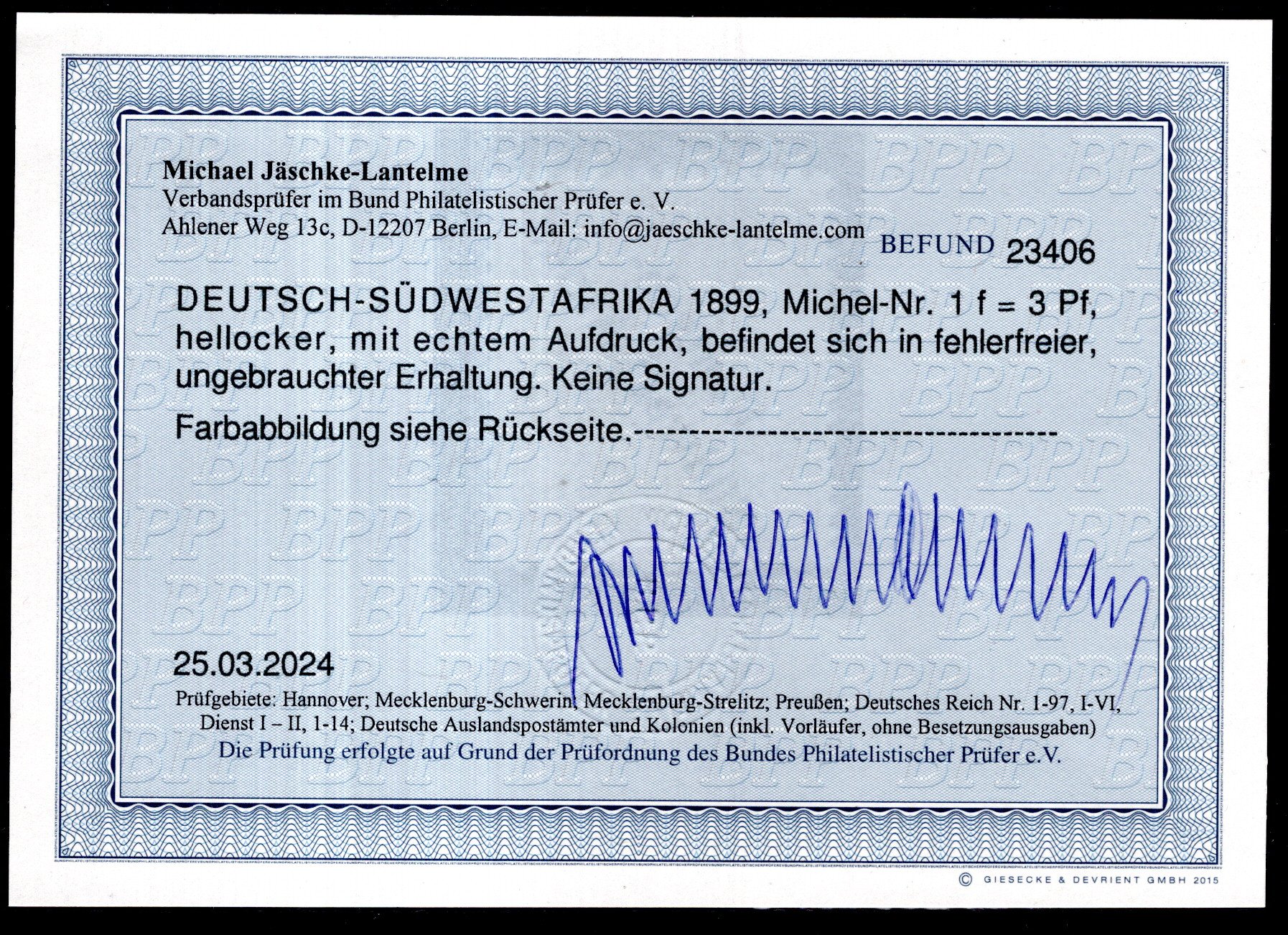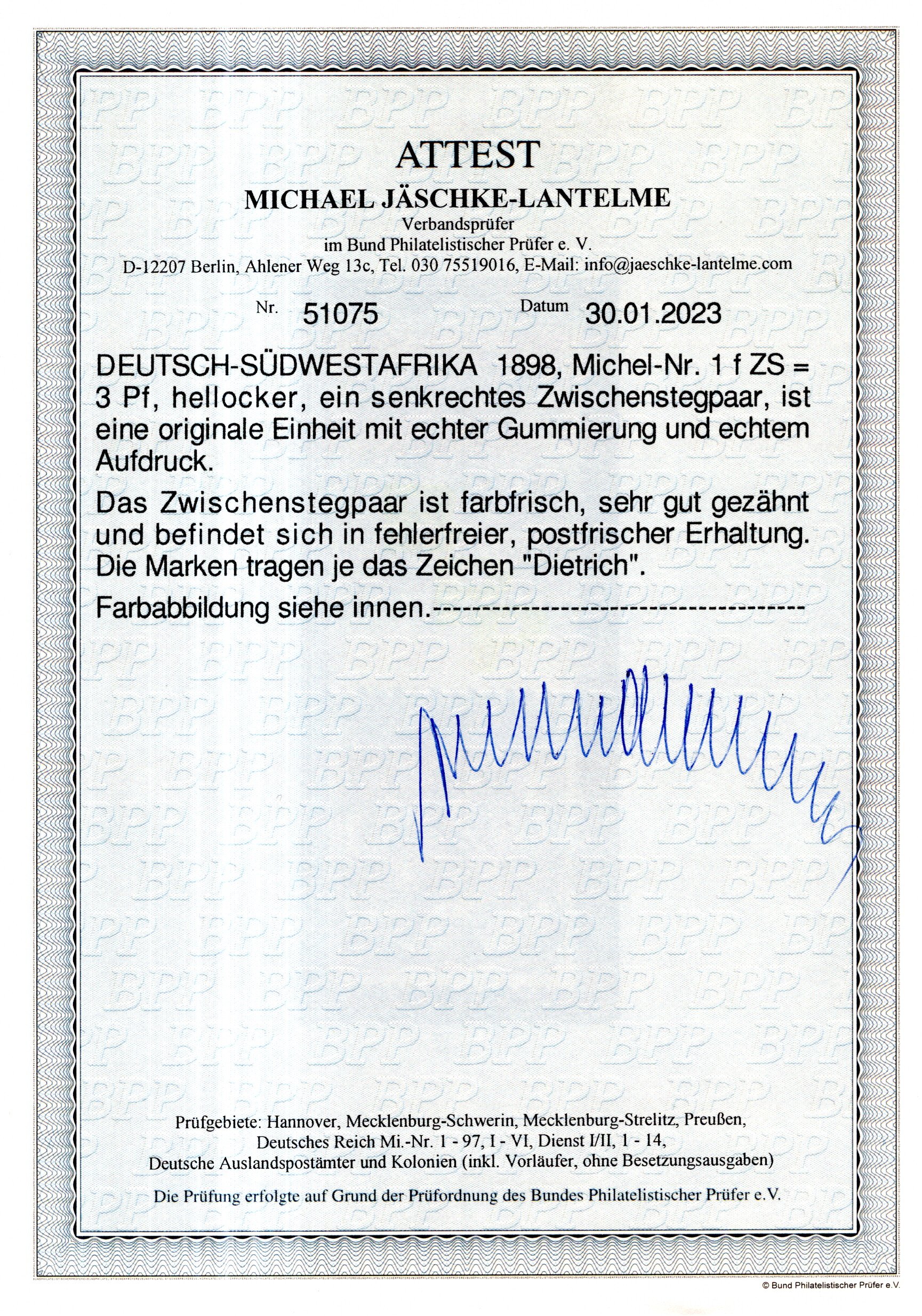 Fotoattest Jäschke-L., Mi.ca.3850.- (Image) (image2)