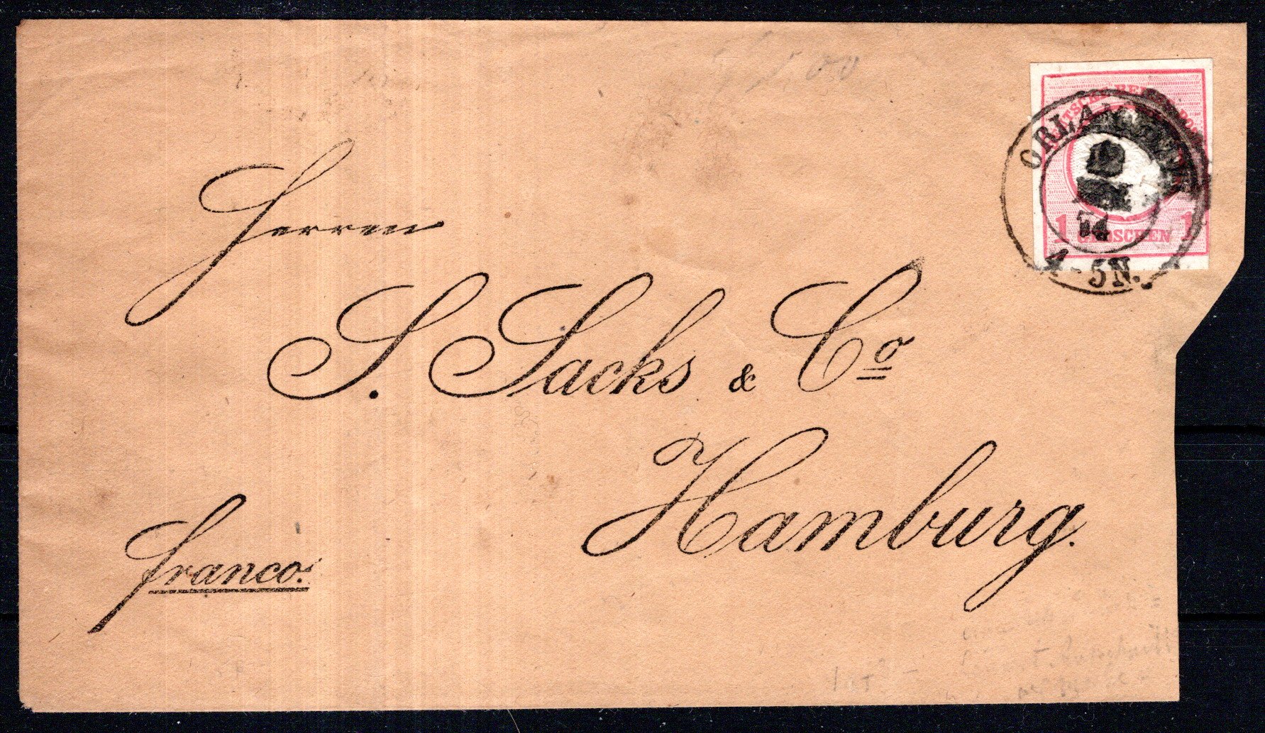 Gzs.Ausgb. 1 Gr. als Frankt. auf Brief nach Hamburg (rücks. HE Stpl. Ank.), Hülle rechts etwas coupiert (Cat Value 250) (Image)