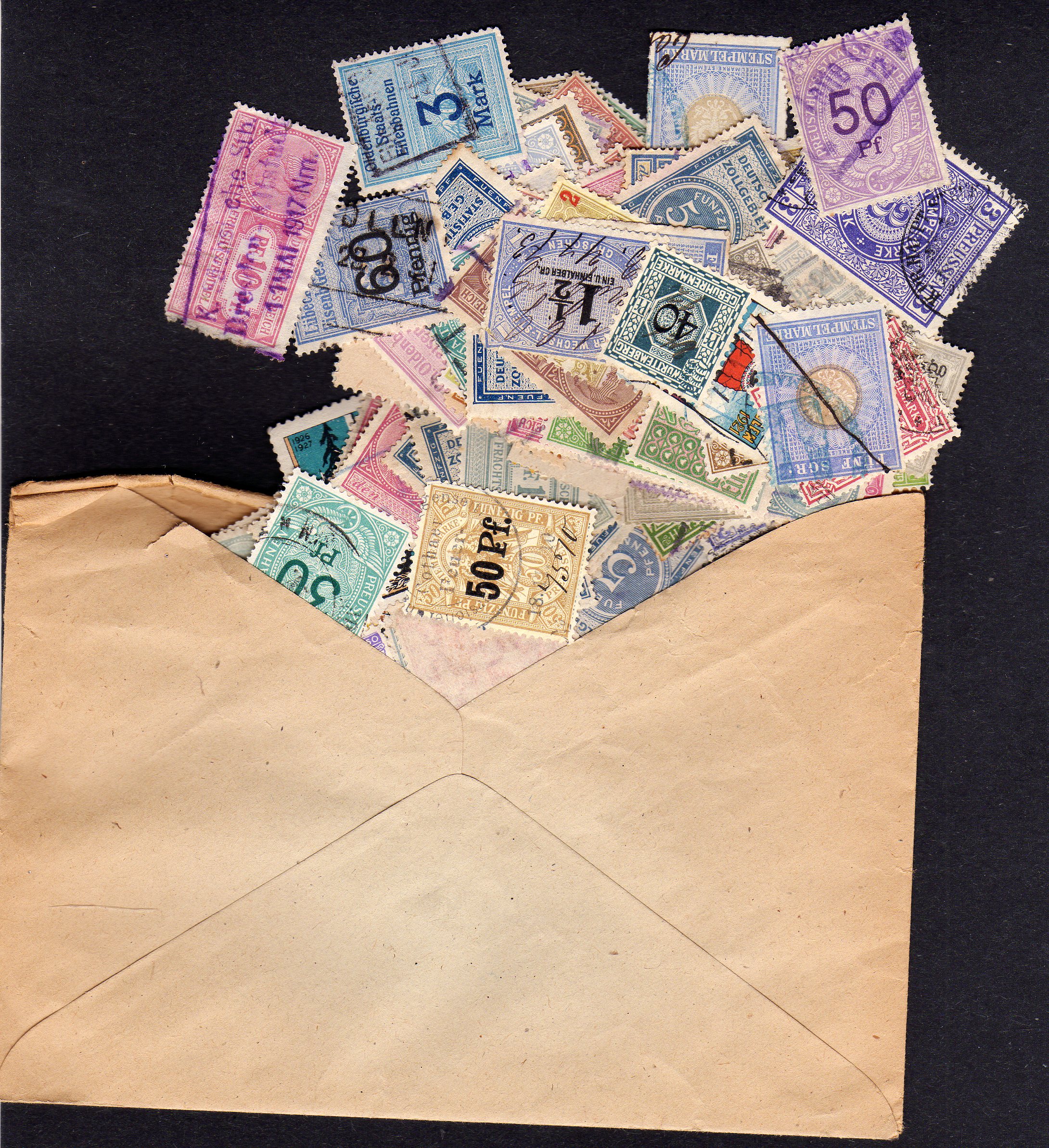 /Preußen, Tüte mit gebr. Stpl.-/Gebührenmarken, Frachtstpl.Marken etc., viele Verschd., über 200St. (Image)