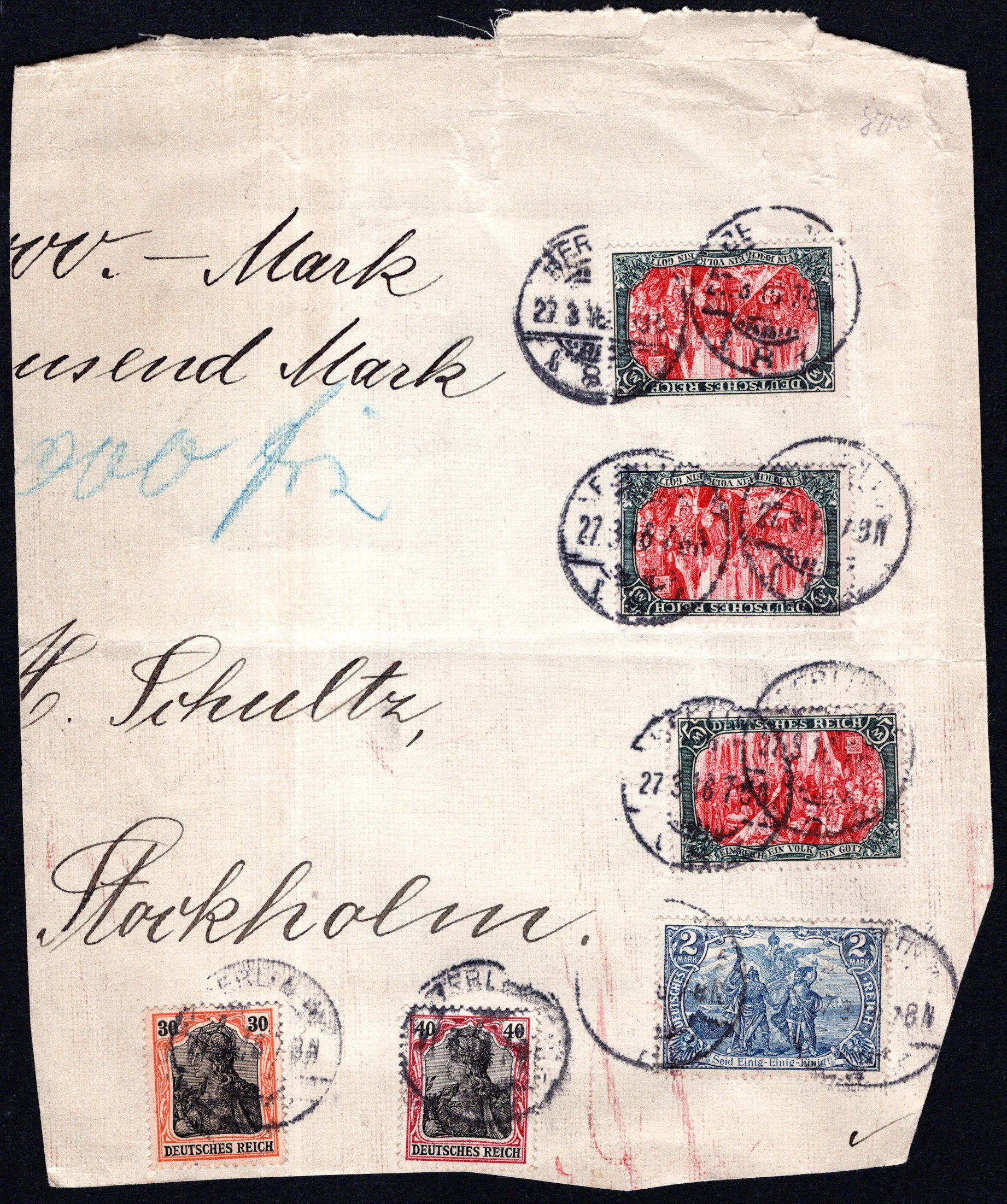 89-90II, 95AI auf großem Wertbrief- nach Stockholm, sehr hohe Frankt., Stpl. Berlin 27.3.16, Pracht (Image)