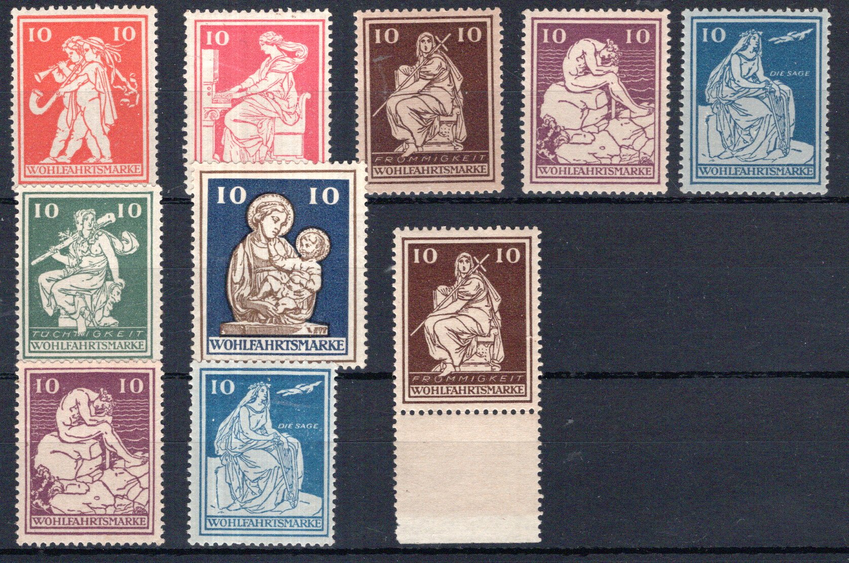 Sieben verschd. Wohlfahrtsmarken plus drei -Dubl., Kab. (Image)