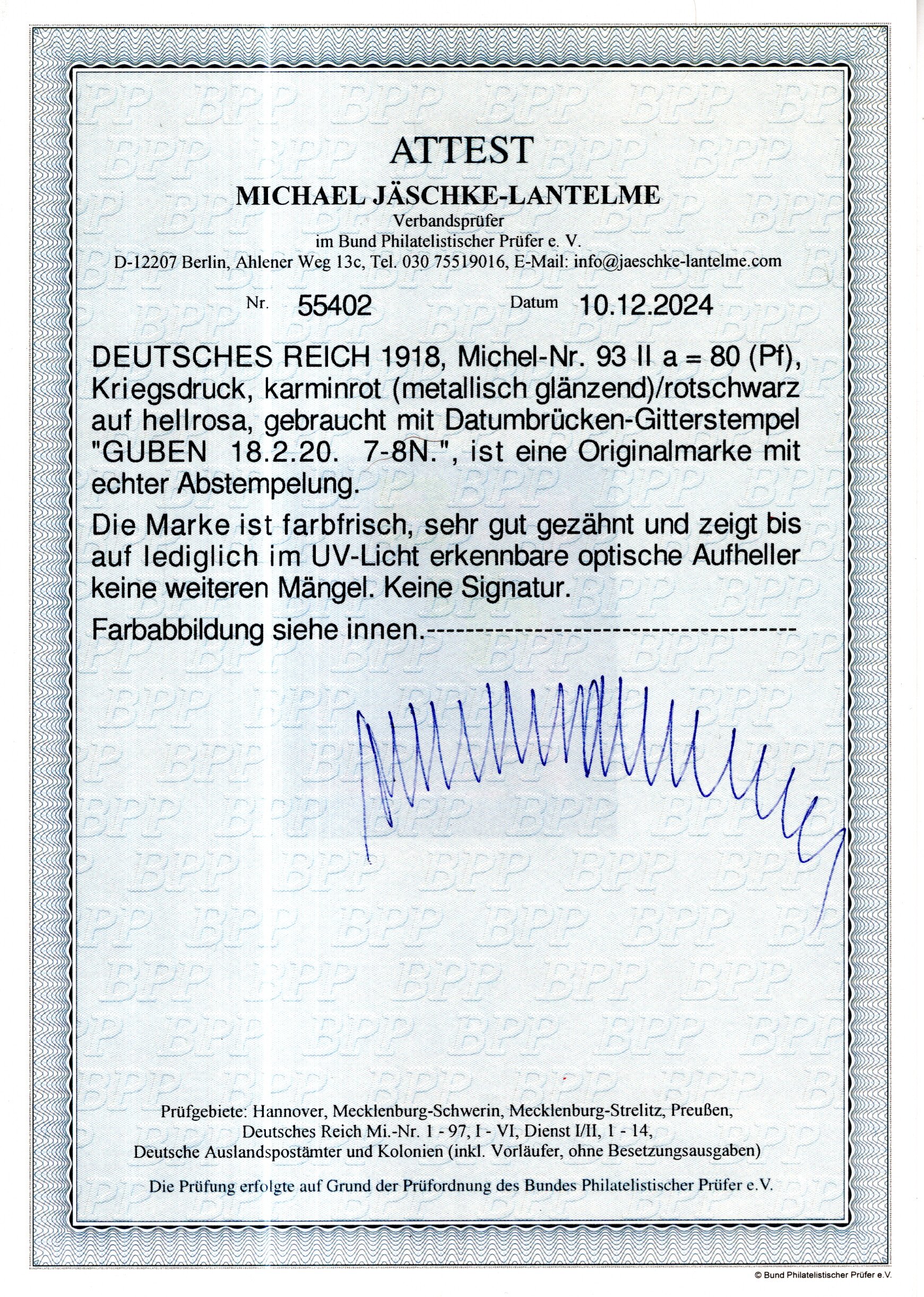 Pracht, 96 gepr. Jäschke, 97 gepr. Zenker (Cat Value 1005) (Image)