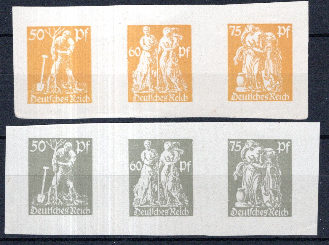 Dreierstreifen in gelb bzw. grau mit Wertstufen 50, 60 u. 75Pf Probedrucke (Image)