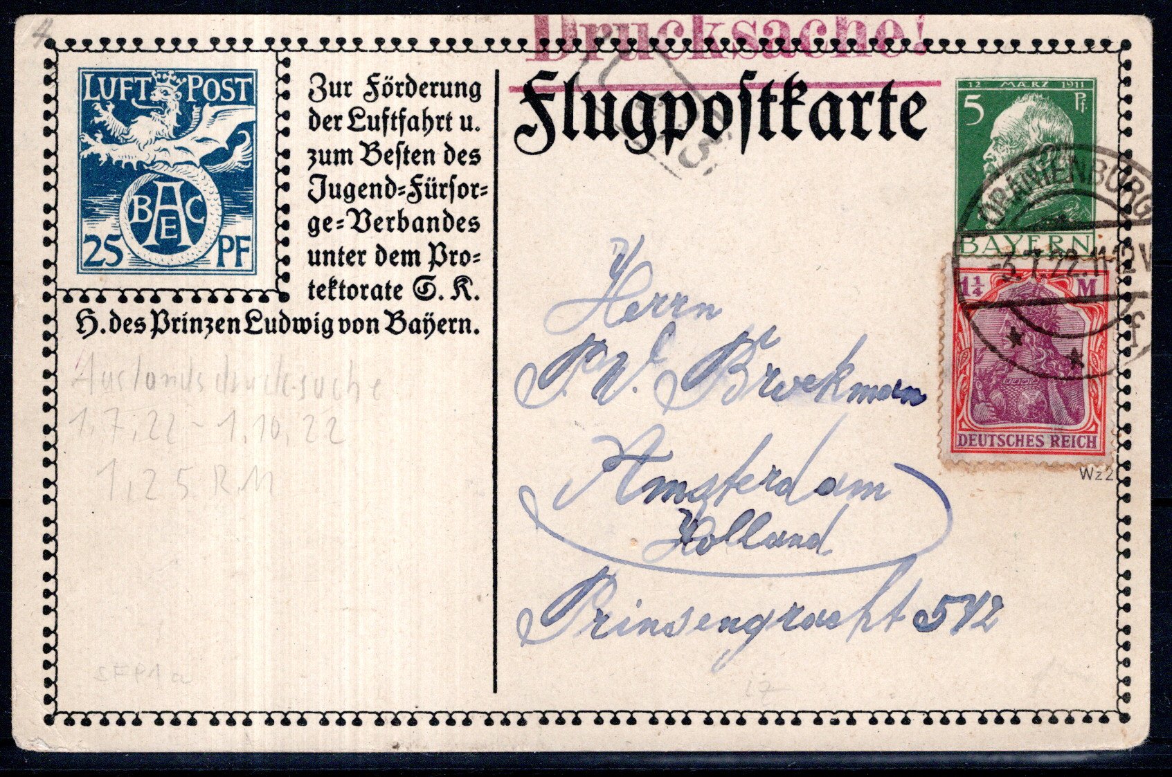 EF auf portoger. Auslandsdrucksache Sonderkarte Bayer. Flugpost) (Image)