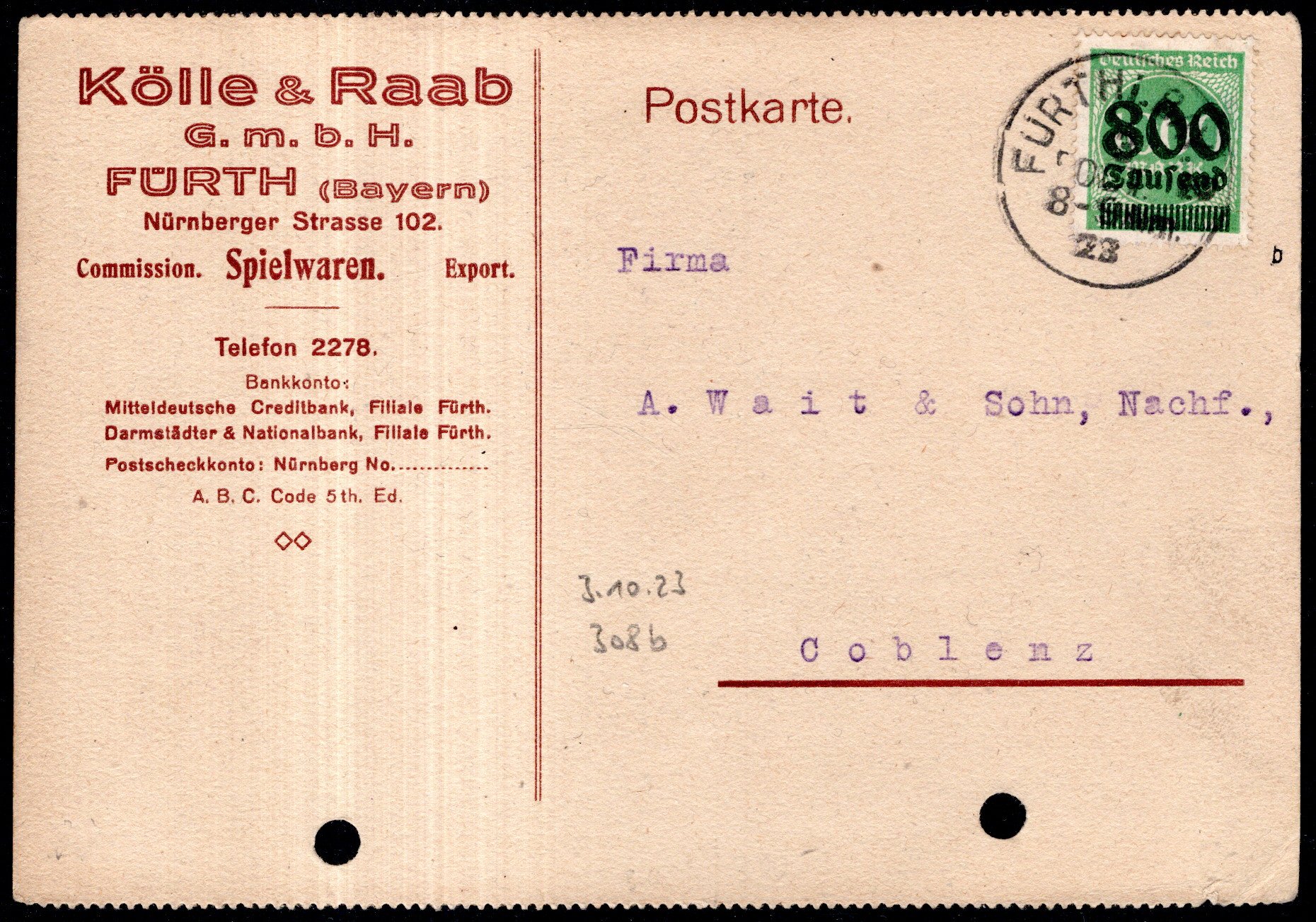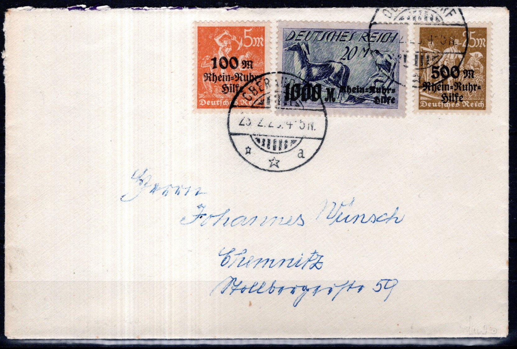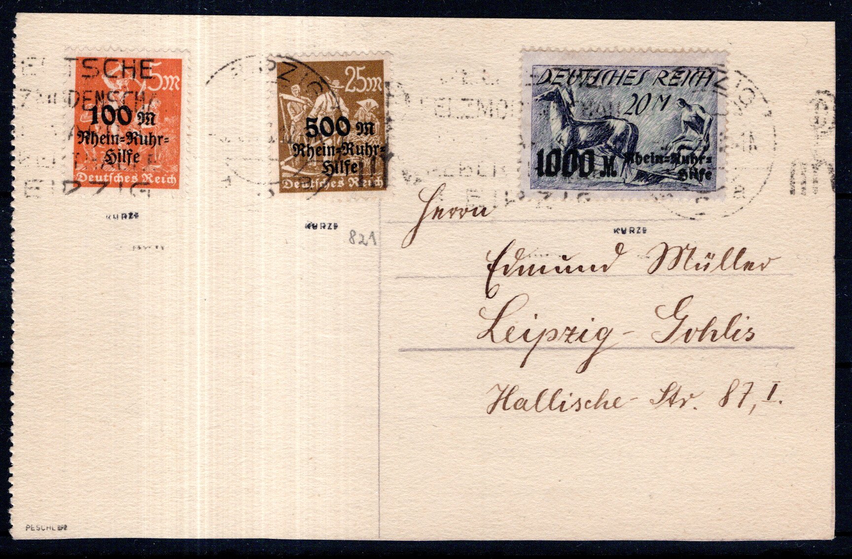auf Bedarfskarte innerhalb Leipzigs gelaufen, Infla gepr. (Image)