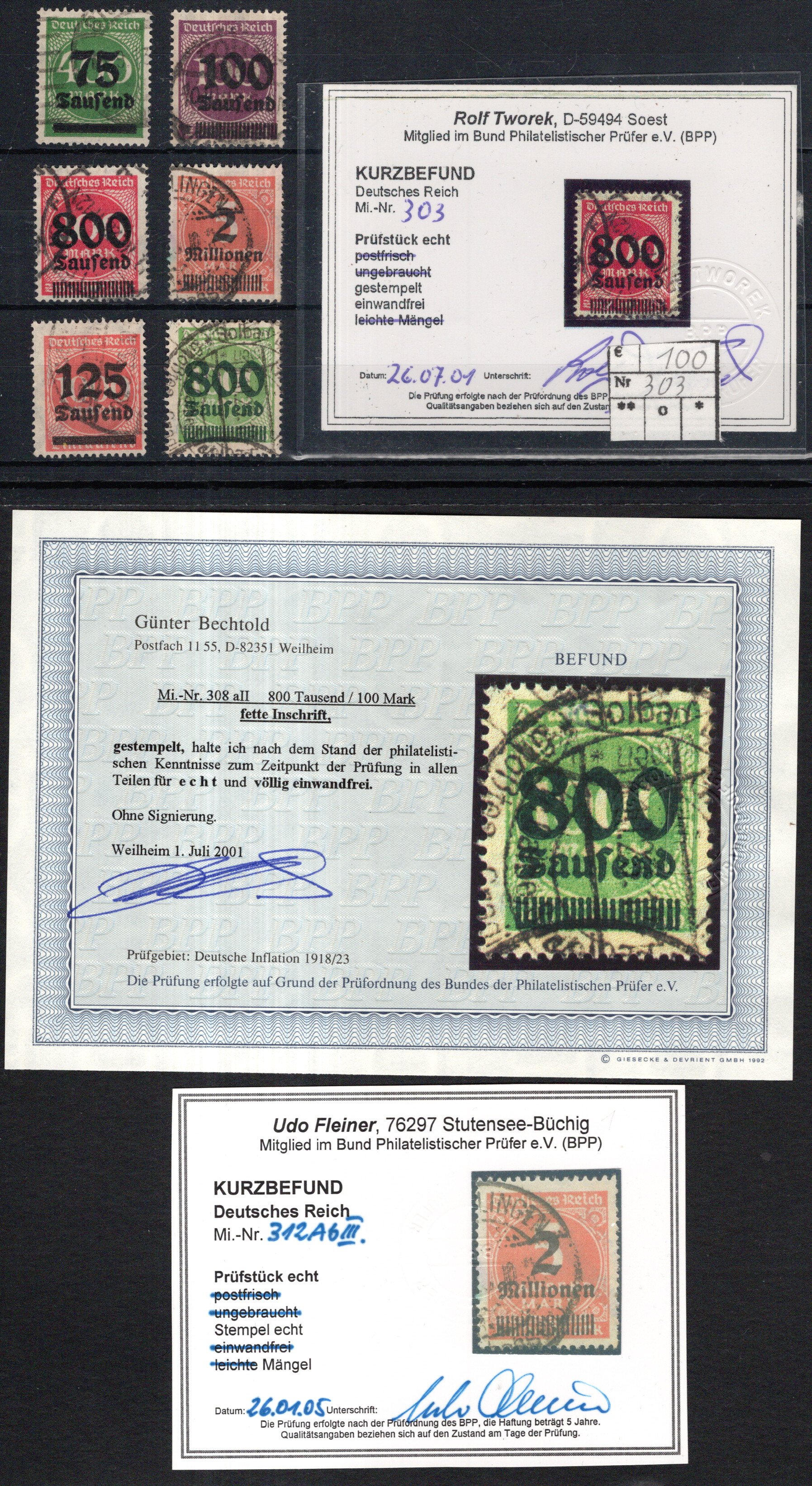 307, ferner 309Pb, 309Ba, 312Aa/b, 312b , alle kompetent Infla gepr. (Cat Value 418) (Image)
