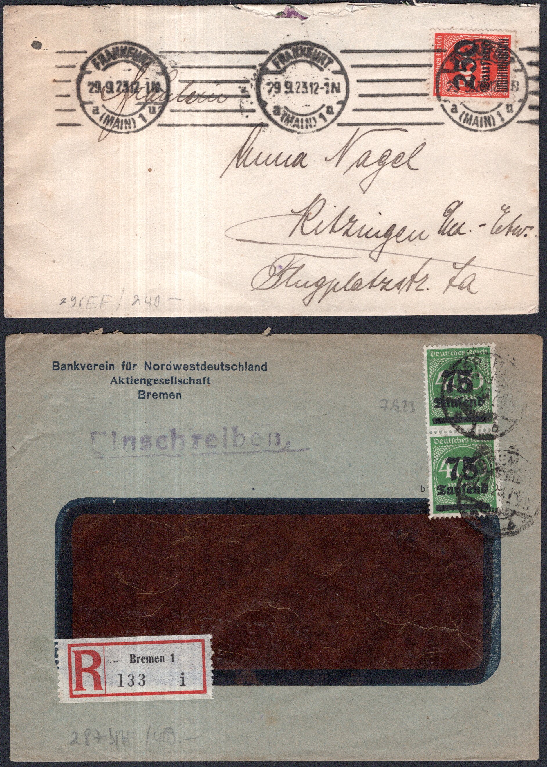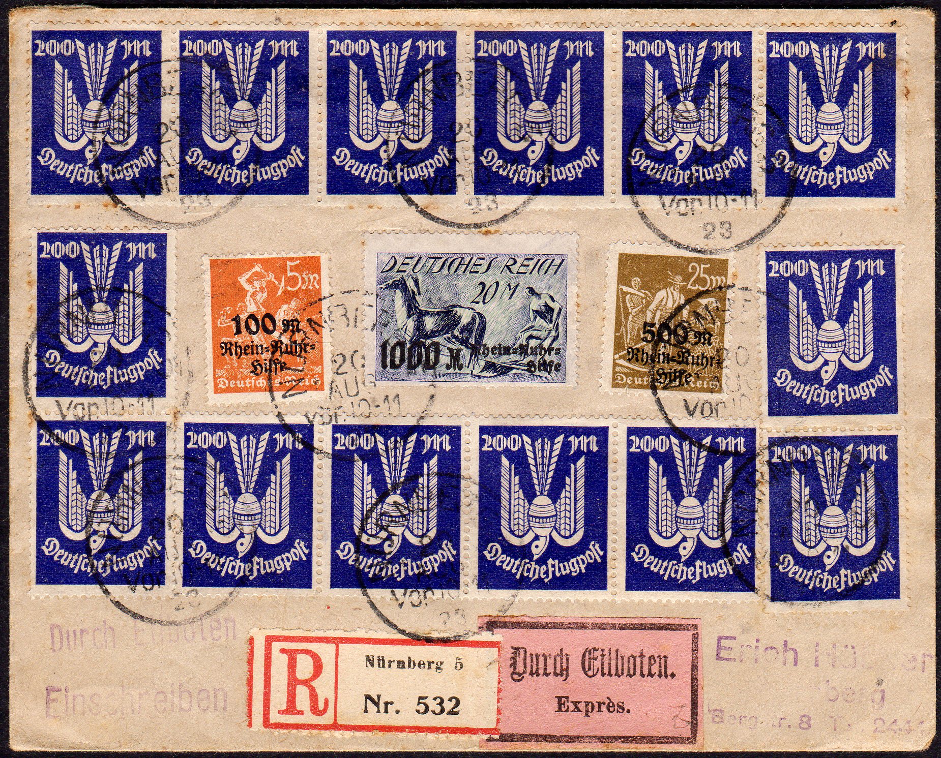 267(14) auf Eilboten-R-Brief, rücks. Ank.Stpl., Pracht (Cat Value 922) (Image)