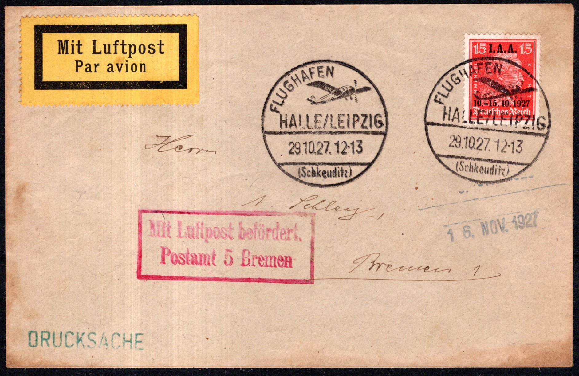 EF auf Lp-Brief, Sonderstpl. Flughafen Halle/Leipzig 29.10.27, dekorativ, Mi. 140.- + (Image)