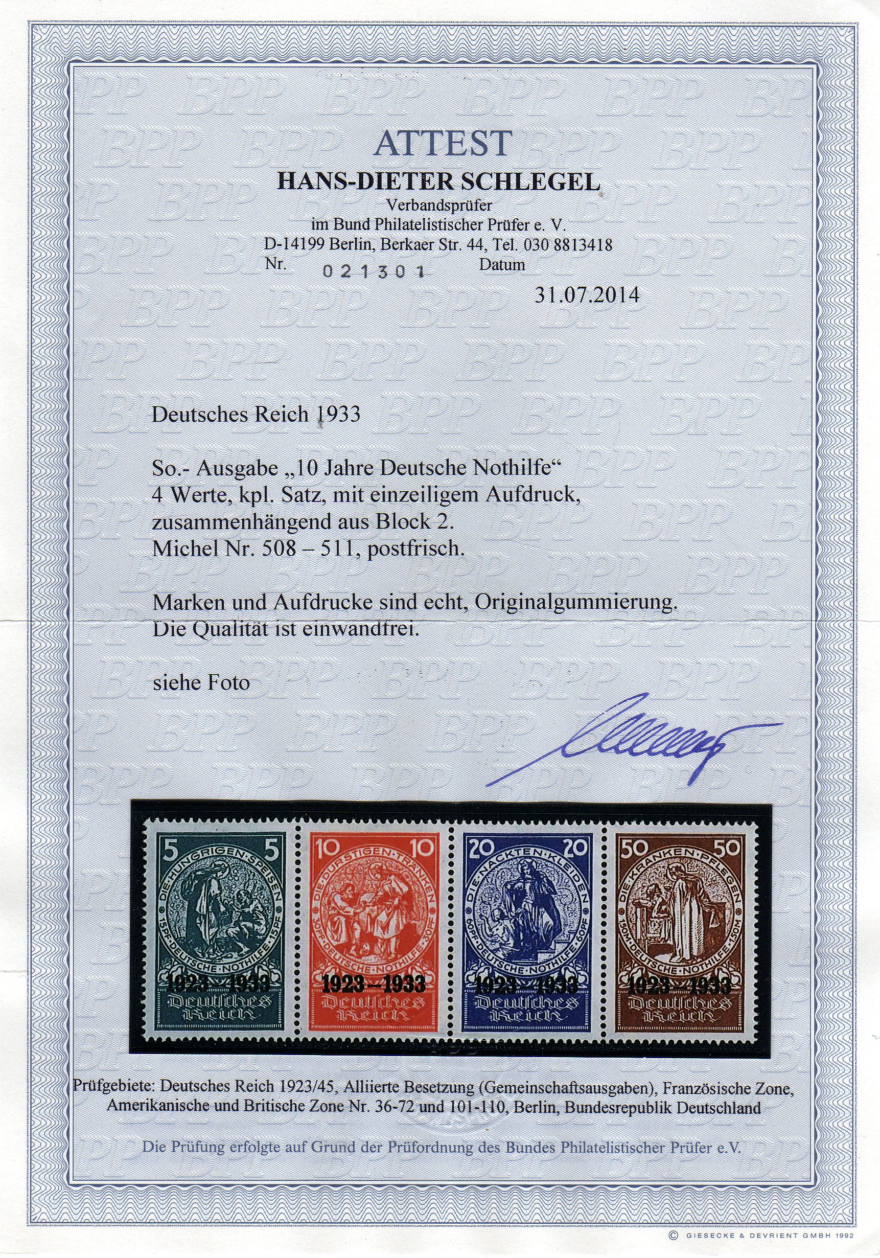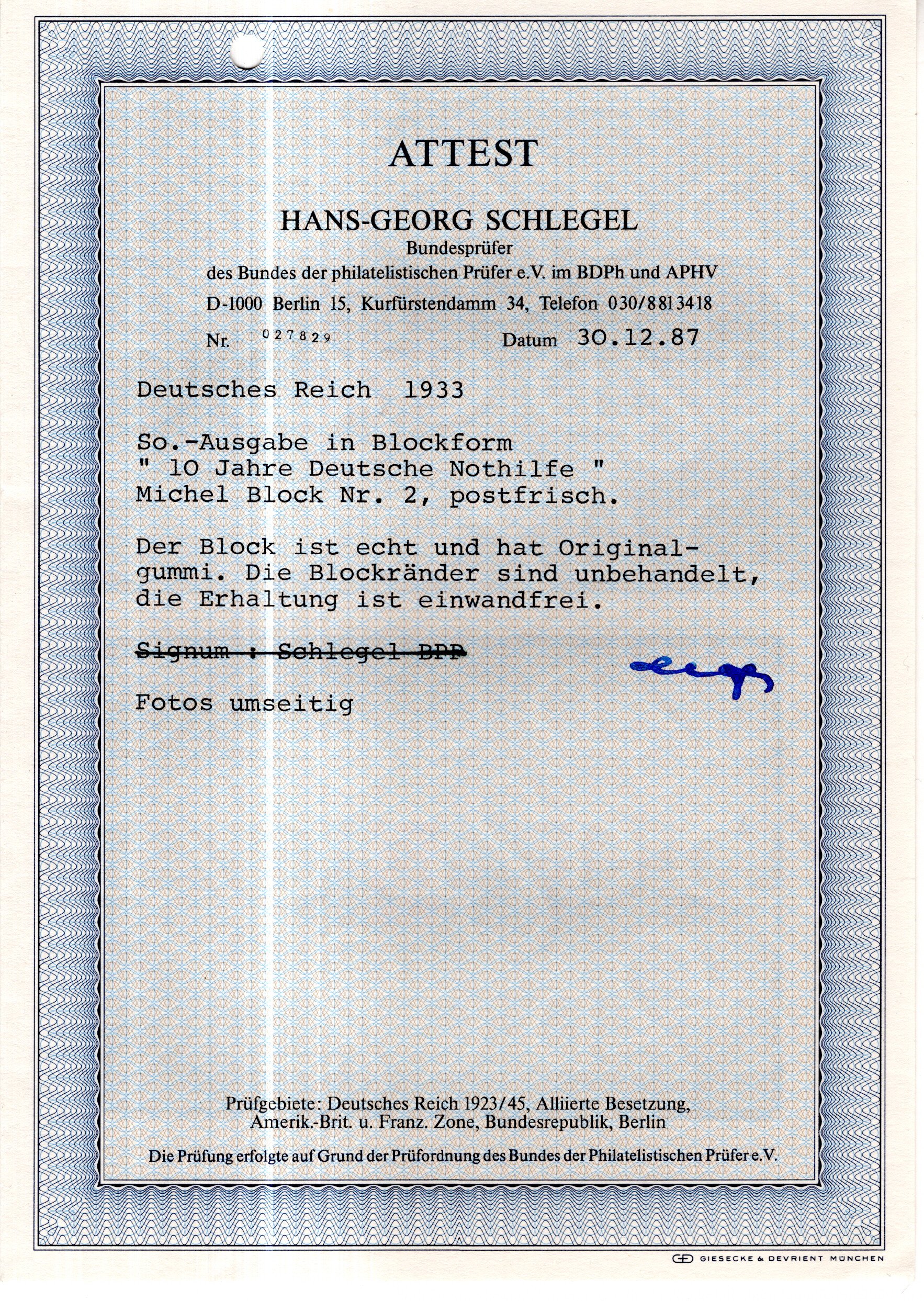 Fotoattest Schlegel "Blockränder sind unbehandelt, die Erhaltung ist einwandfrei" (Cat Value 6000) (Image) (image2)