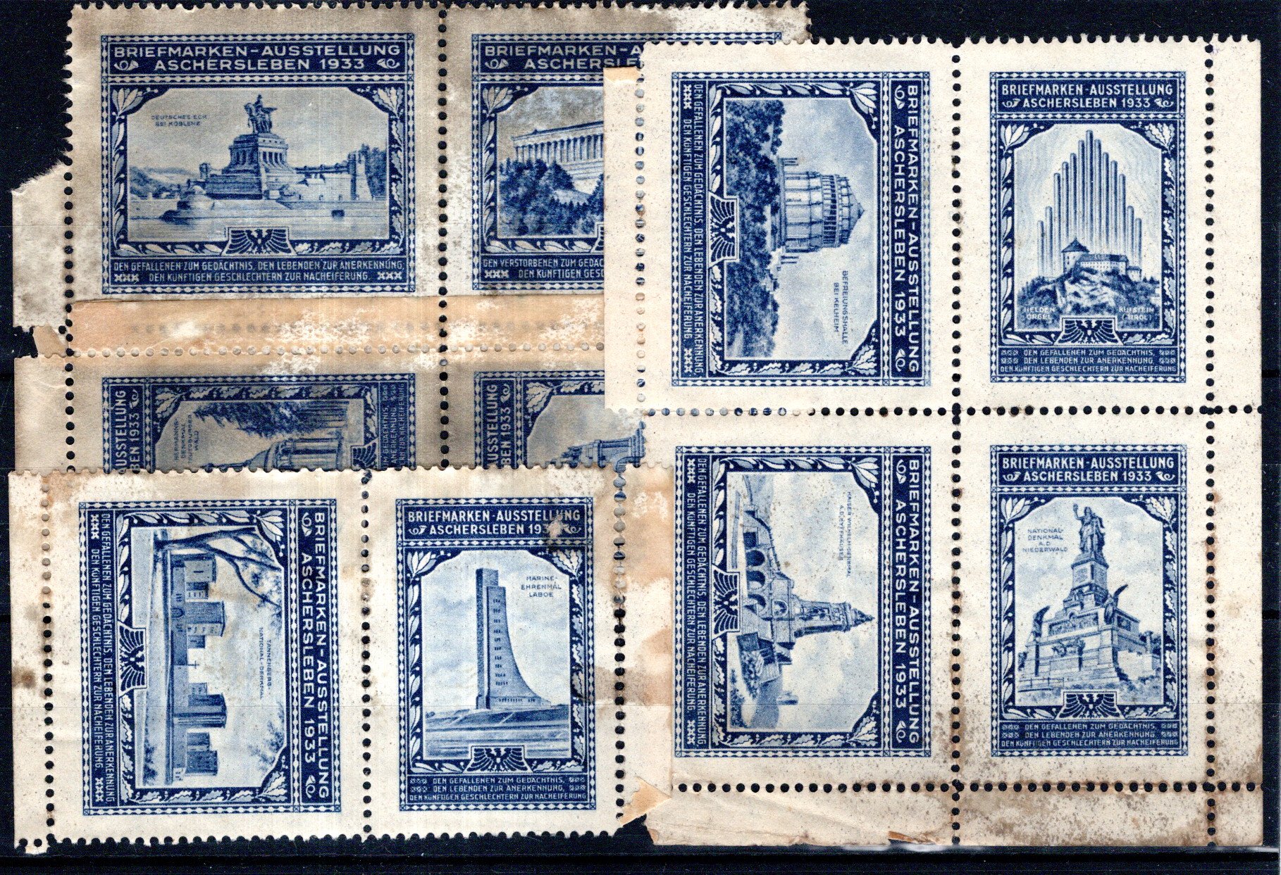 Briefmarken-Ausstllg. Aschersleben, 10 verschd. ungebr. Vignetten, blau, Feuchtigkeitsschäden (Image)