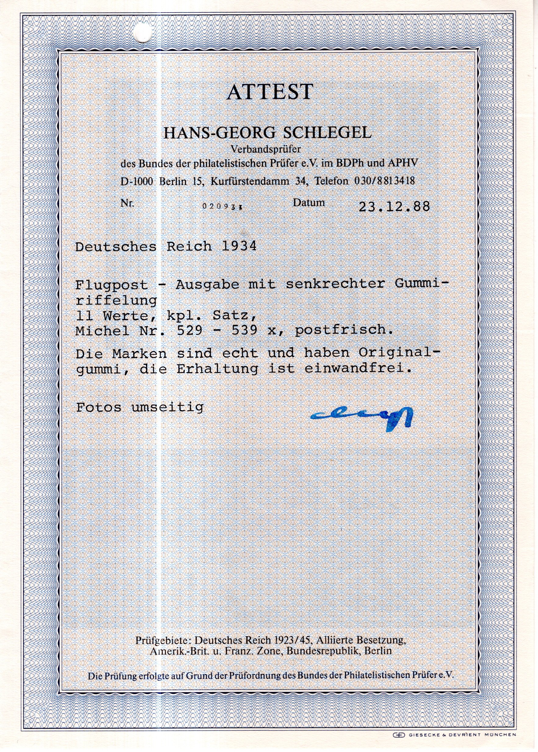 mit Unterrand u. Teil-HAN, Nr.539 gefaltetes Eckrandst., Fotoattest Schlegel (Cat Value 850) (Image) (image2)