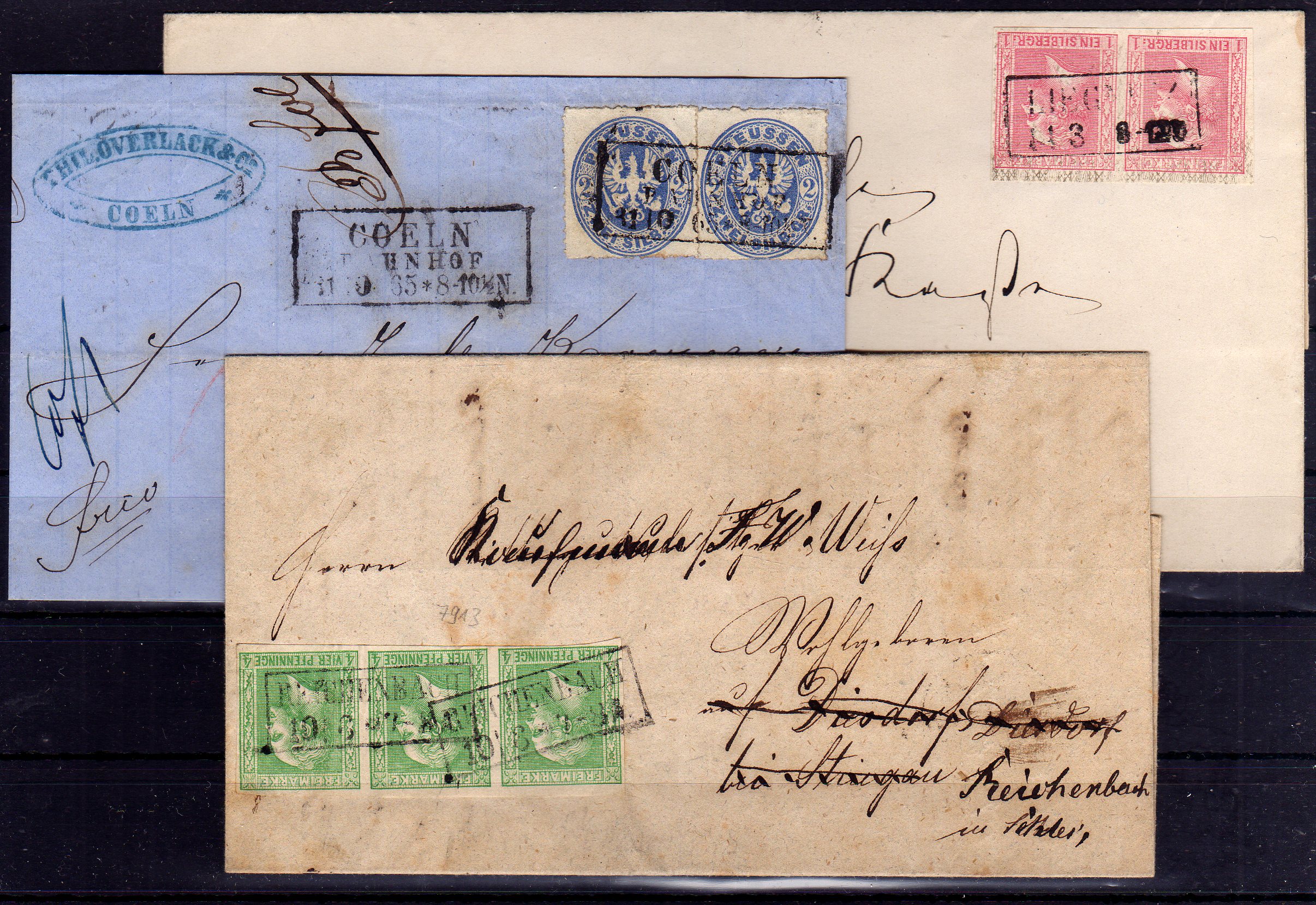 Vollrdg., waag. Dreierstreifen ab Reichenbach, dazu Nr.10 u. 17 je auf u. im waag. Paar, gute Bedarfserhaltung (Cat Value 840) (Image)