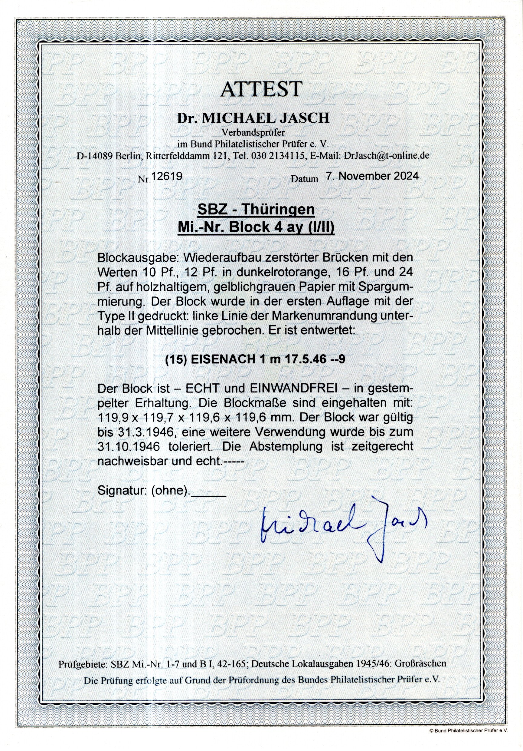 laut Fotoattest Zierer mit echtem Stpl. "Eisenach 25.9.46 nachträglich entwertet" (Image) (image2)