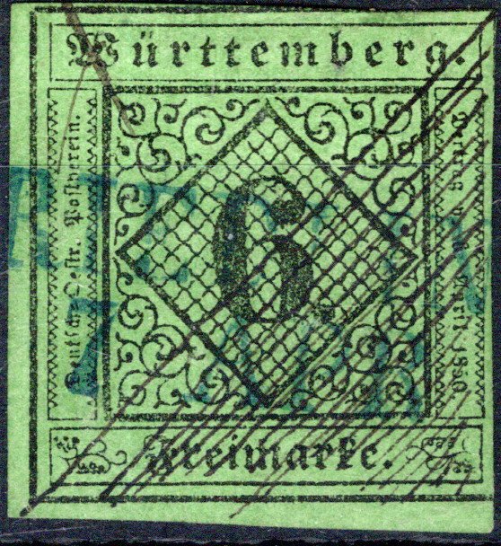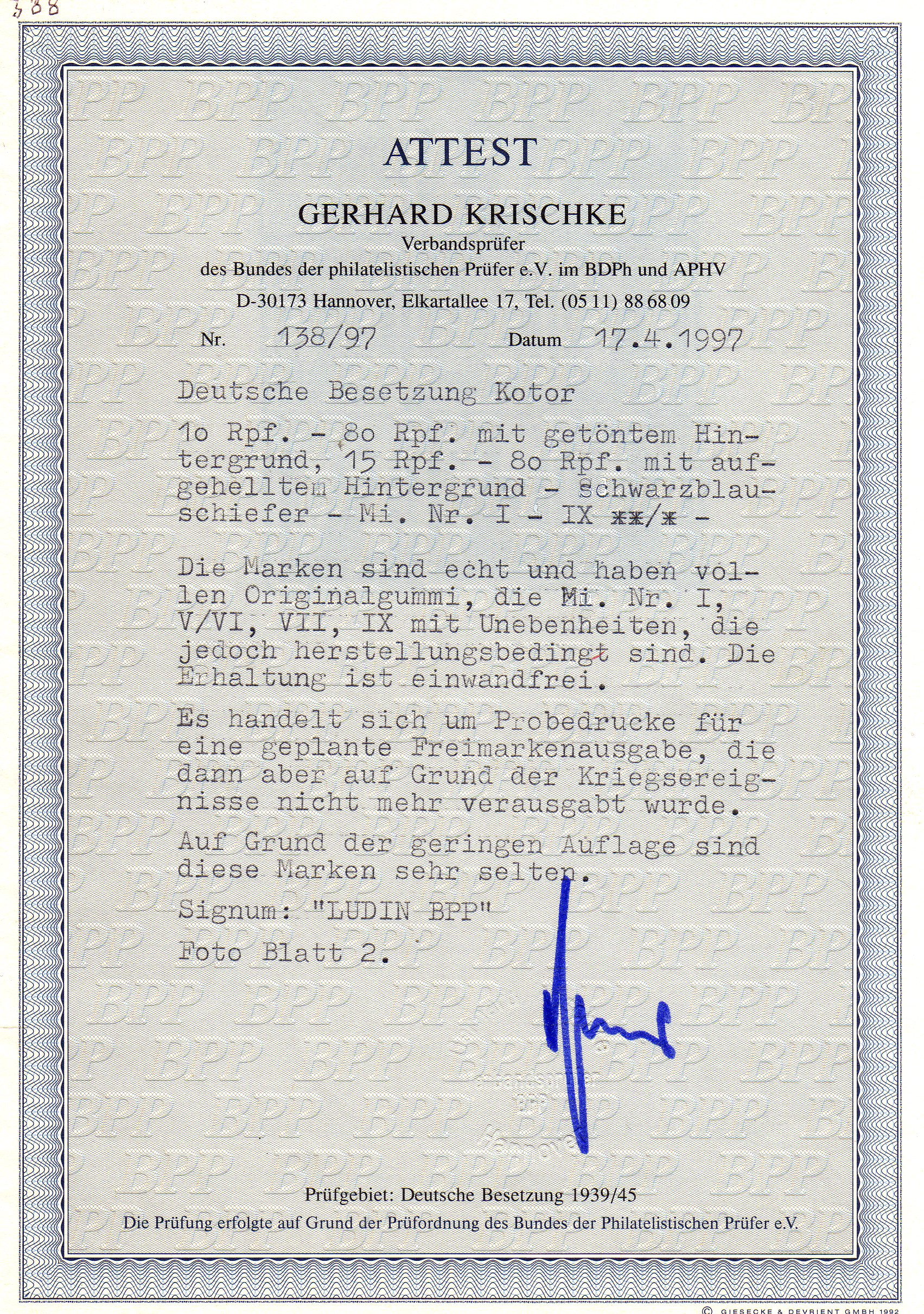 Fotoattest Dr.Knopke "an 3 Seiten voll-, teils breitrdg. und unten leicht angeschnitten", entwertet mit blauem Malteserstpl. (SG No.14) (Cat Value 3500)