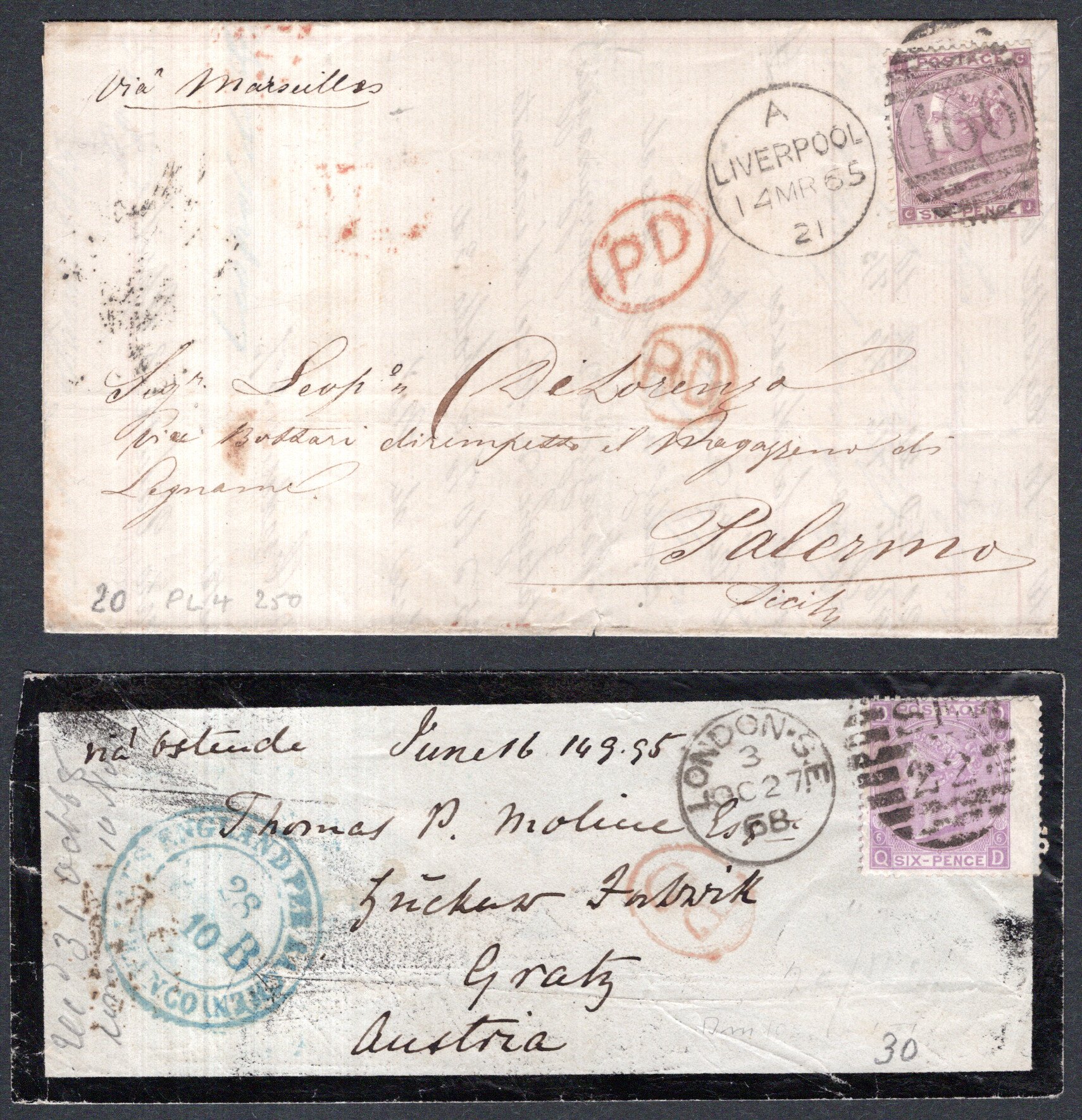 25 Platte 6 je als EF auf Brief nach Palermo bzw. Gratz, Pracht (Cat Value 500) (Image)