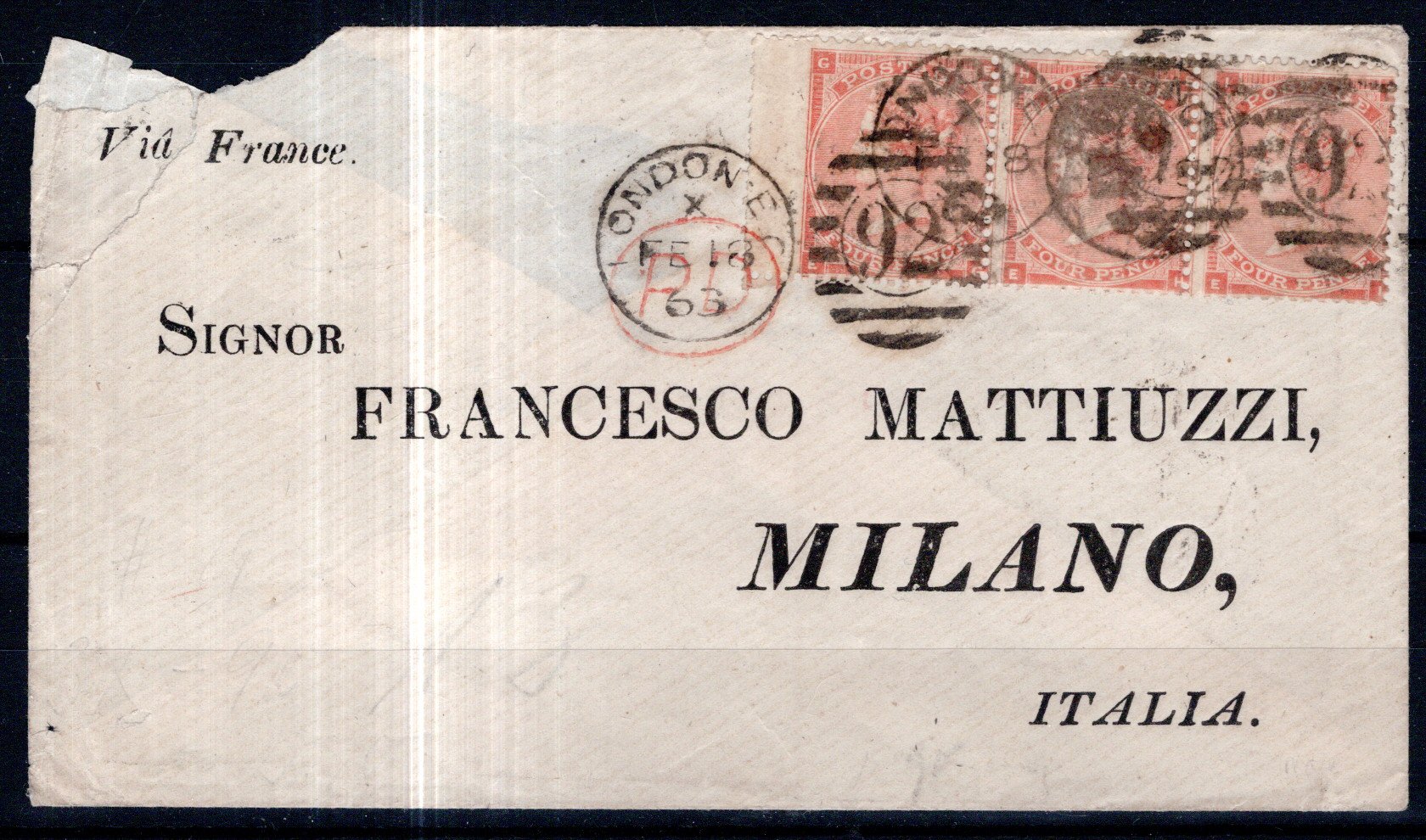 Briefe mit je 1 EF n. Sardinien/Modena, 2 verschd. Londoner Aufgabe- und PAID Stpl., Pracht (1Beleg evtl. "v"-Papier?) (Cat Value 300) (Image)