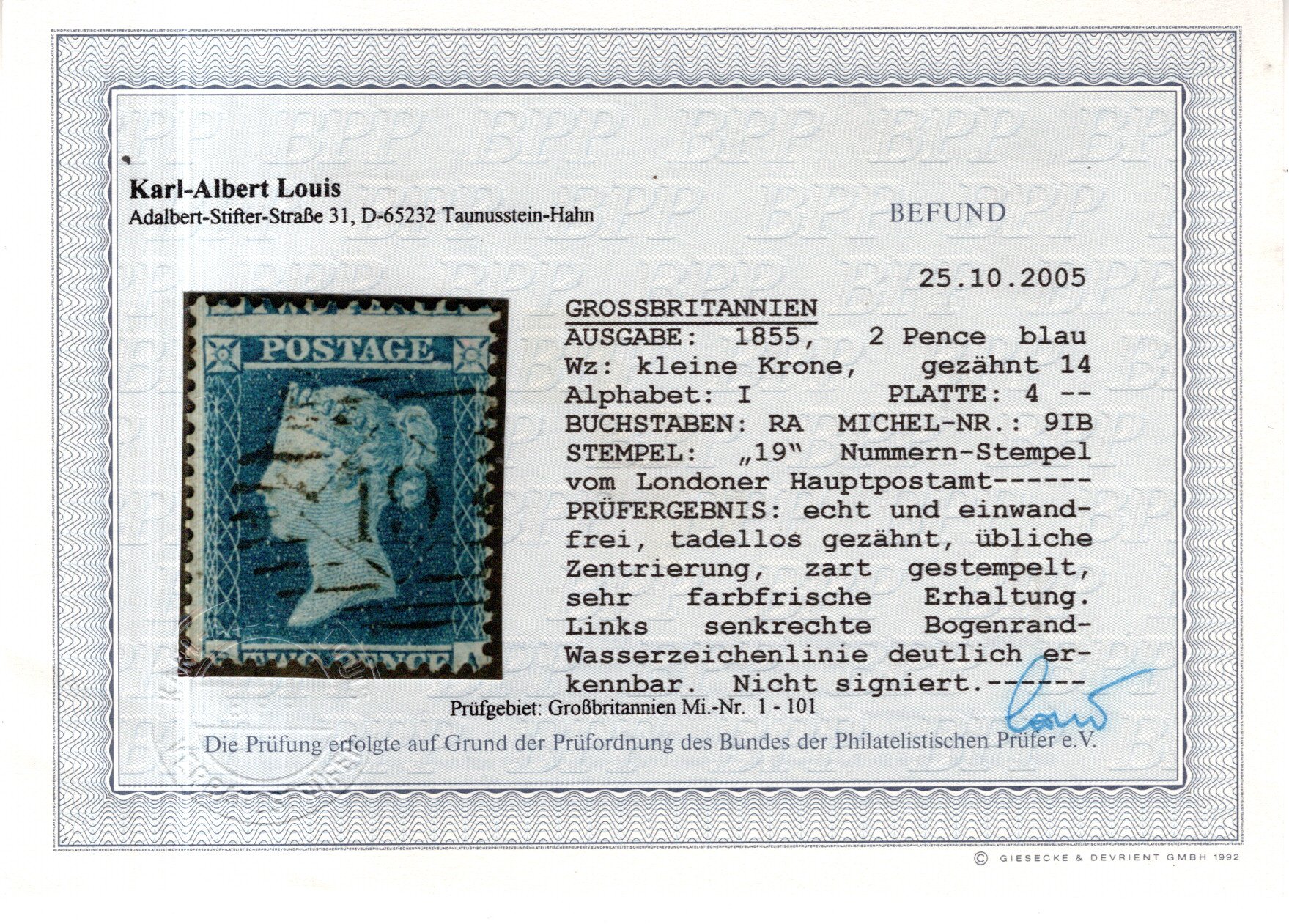 Elfenbeinkopf u. Einschränkg., Fotoattest RPS, SG 250.- Pfund (Image)